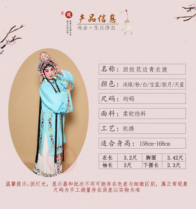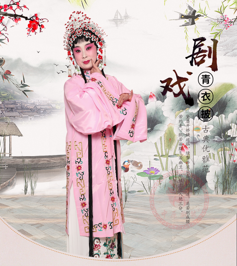 商品名称:中原戏装戏曲青衣披花褶子戏剧京越剧演出服装花旦回纹花边青衣披
