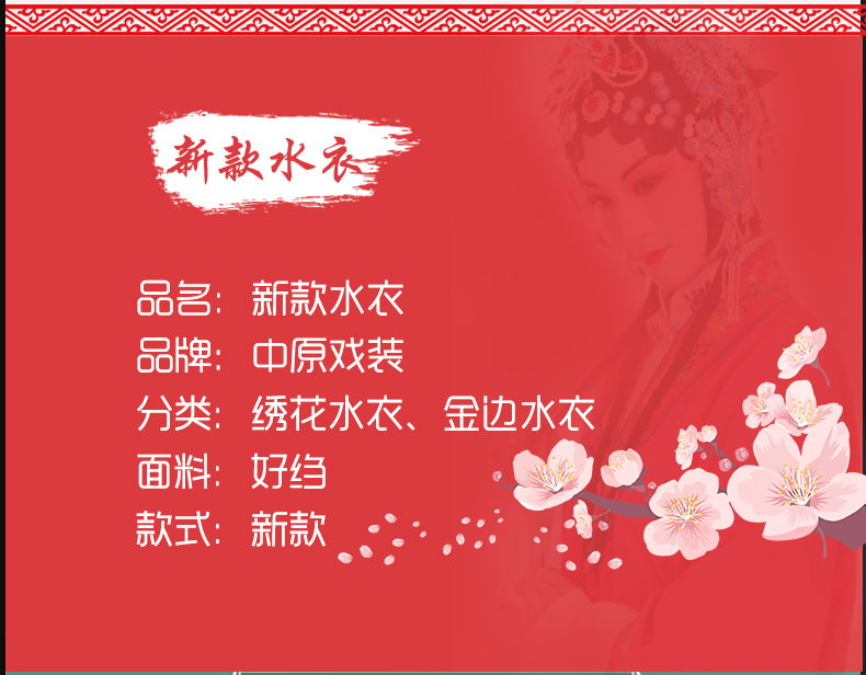 商品名称:中原戏装新款戏曲水衣好绉料戏剧京剧青衣花旦角绣花镶边水衣内衣
