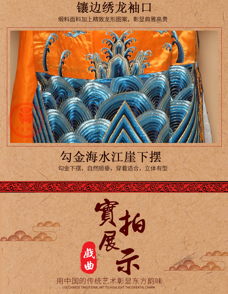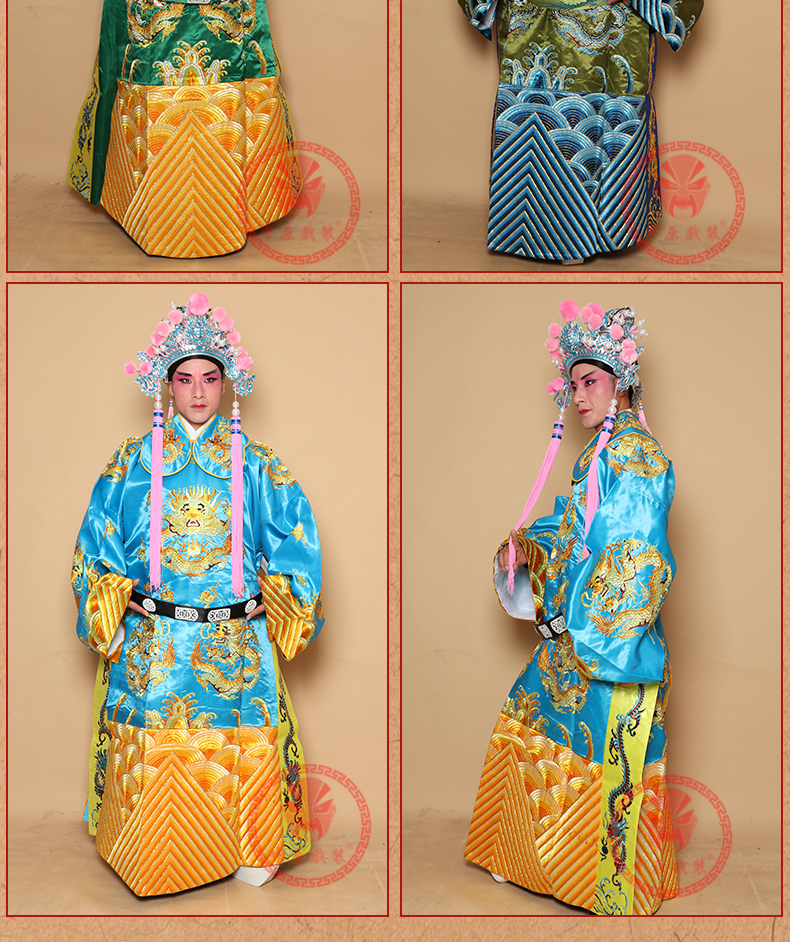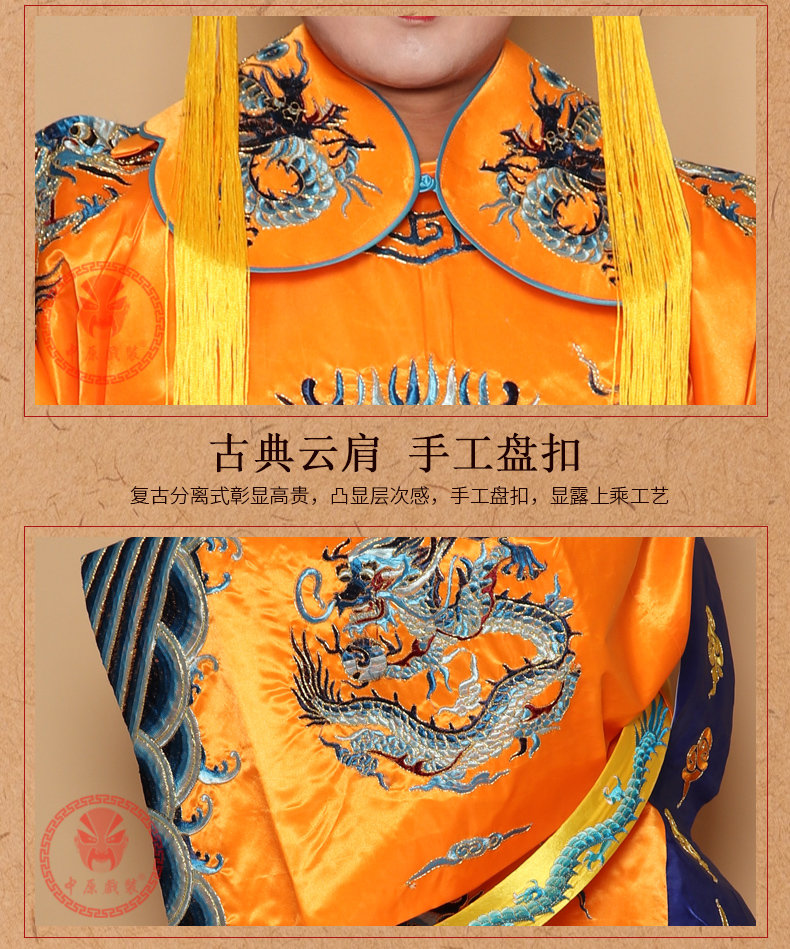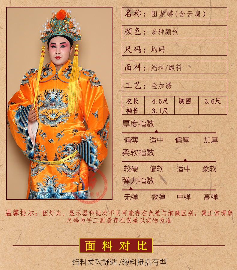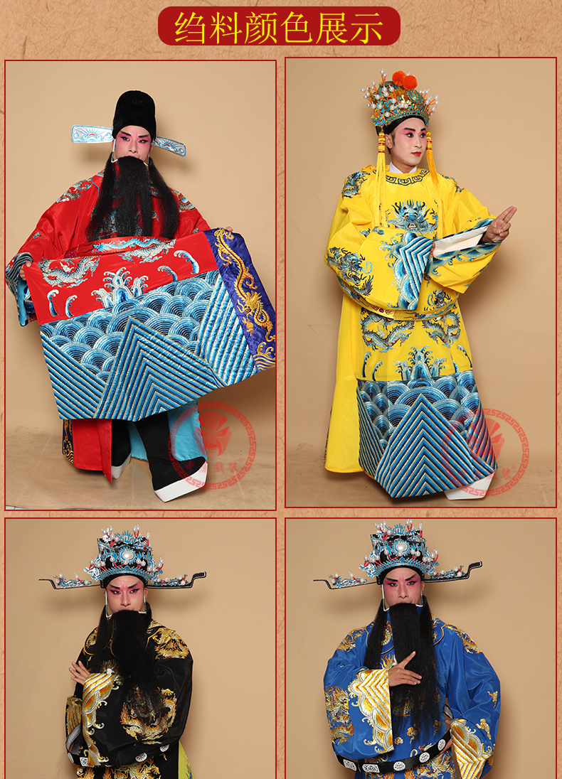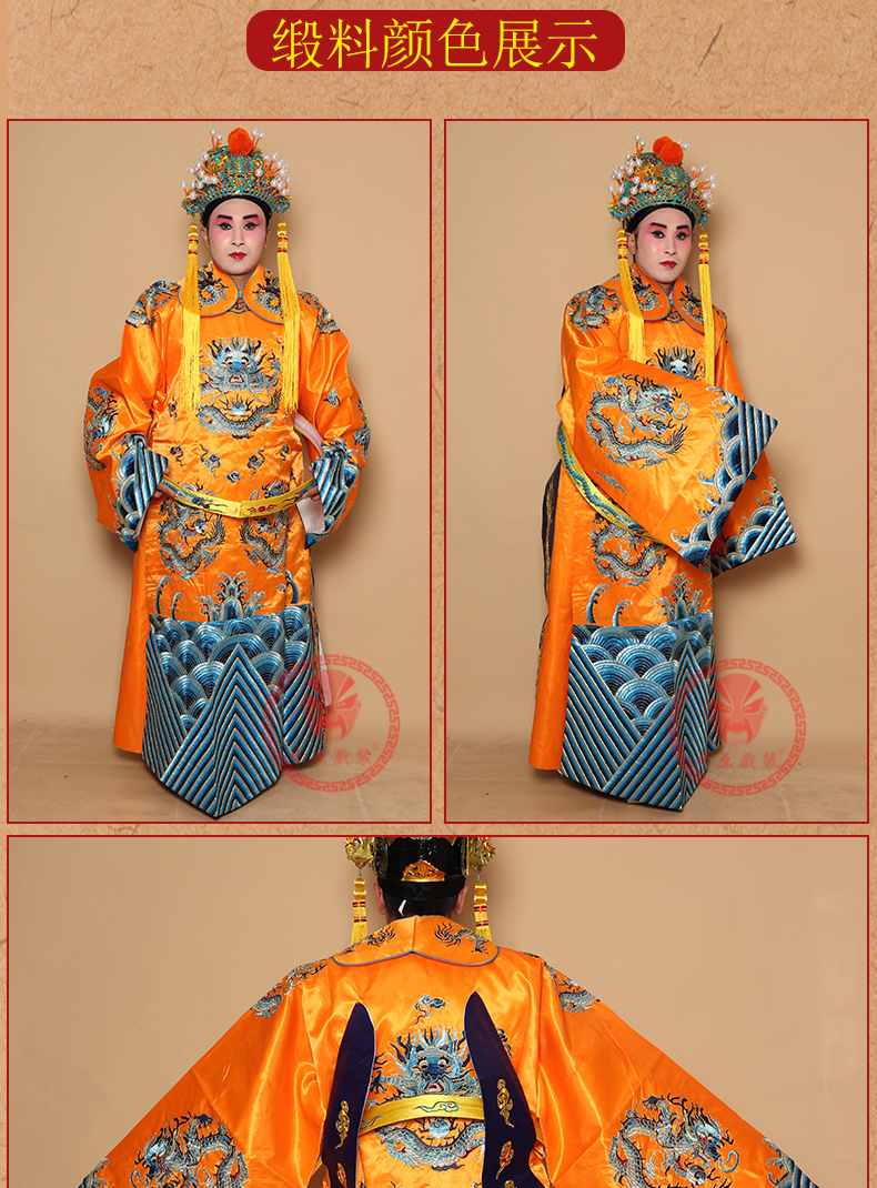 商品名称:中原戏装戏曲龙袍皇帝王爷蟒袍京剧越戏剧演出服装普勾金团龙男蟒
