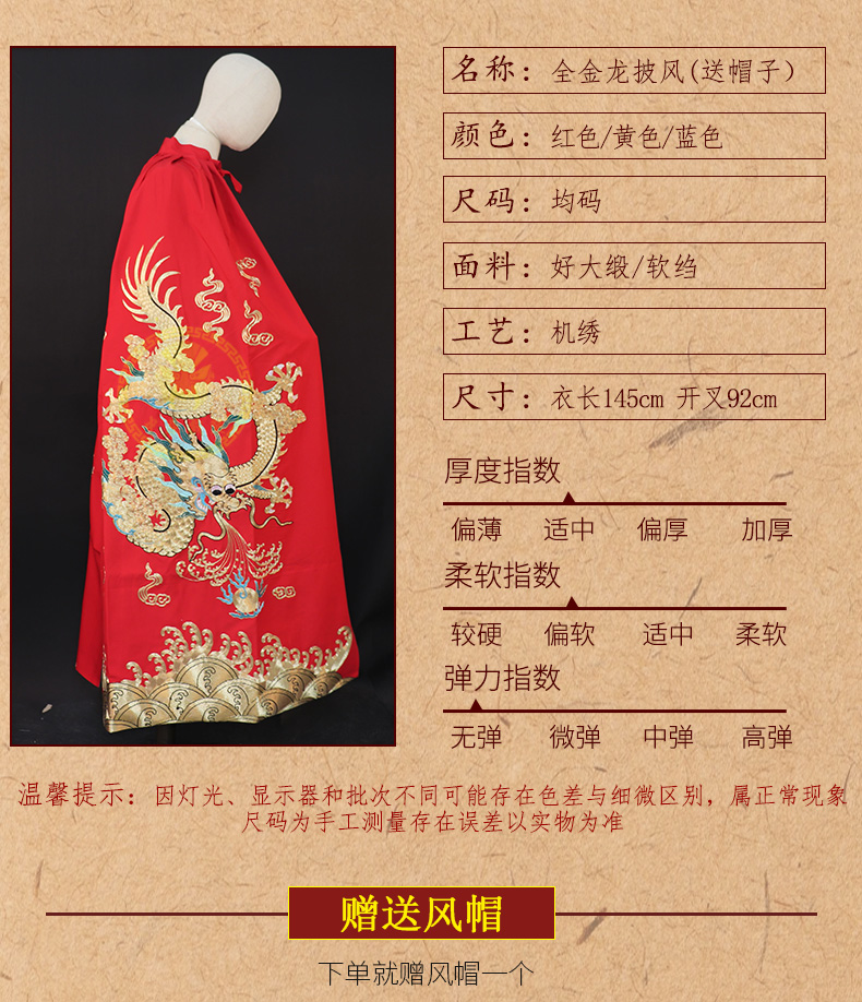 商品名称:中原戏装京剧豫粤剧戏曲全金龙披风武生戏服皇帝斗篷川剧变脸披风