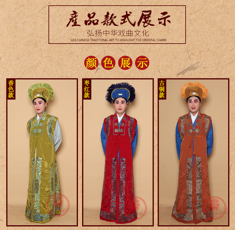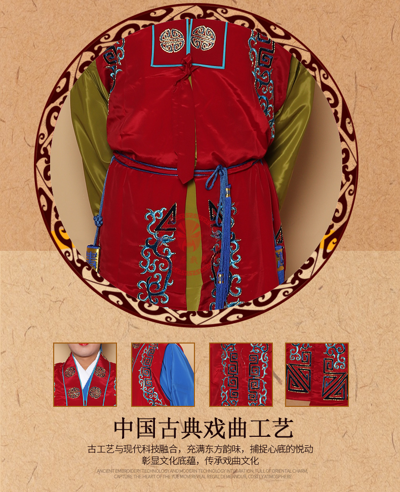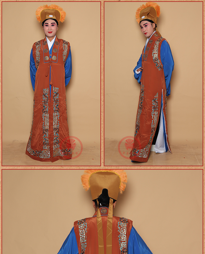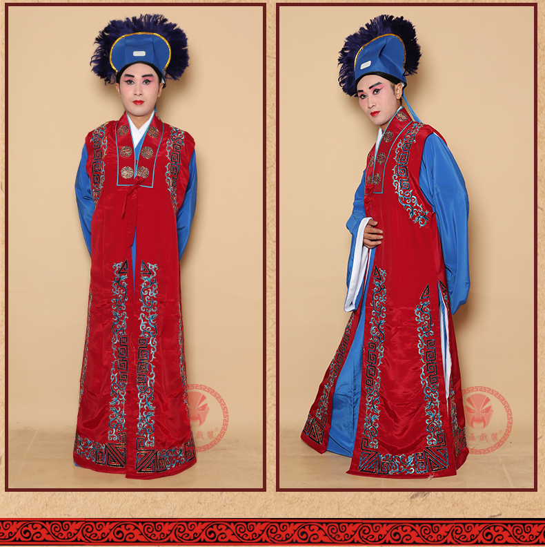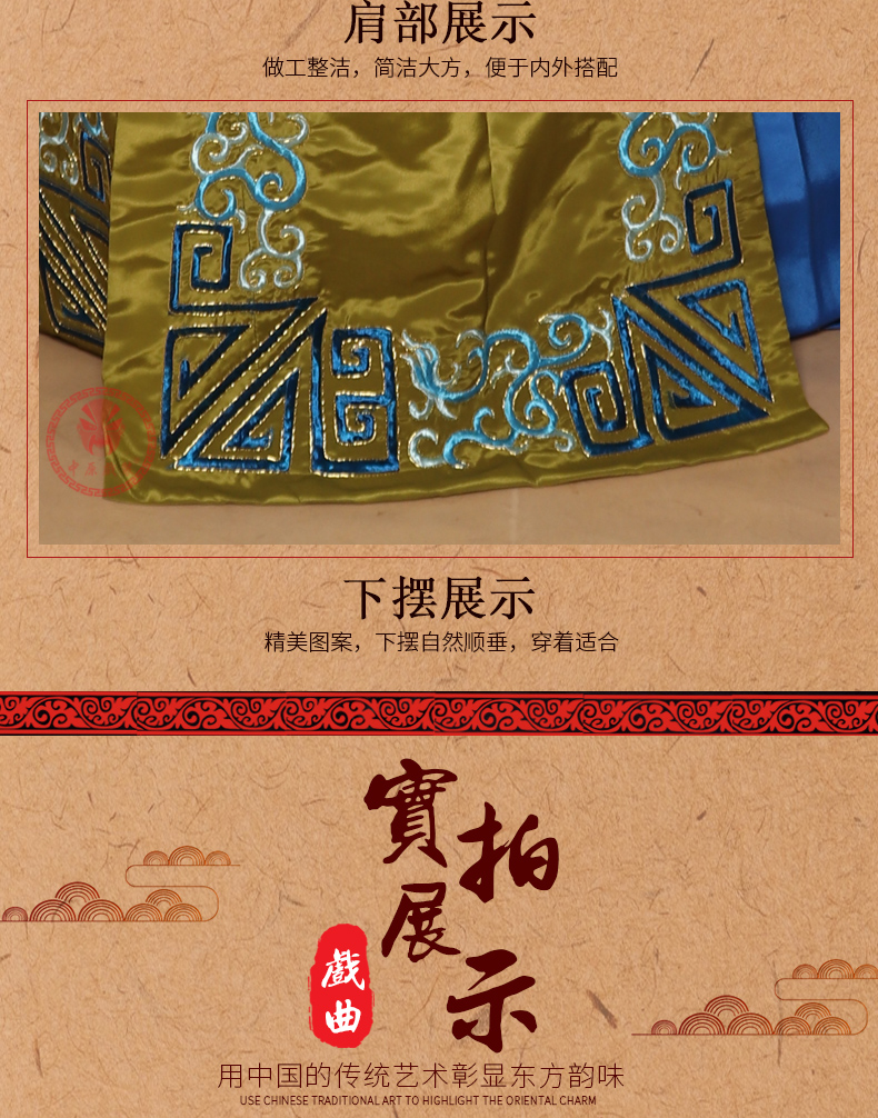 商品名称:中原戏装戏曲服装老生坎肩背心员外京越剧舞台演出花边镶边老生坎