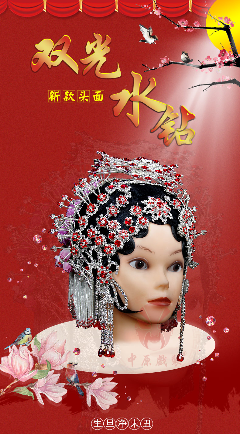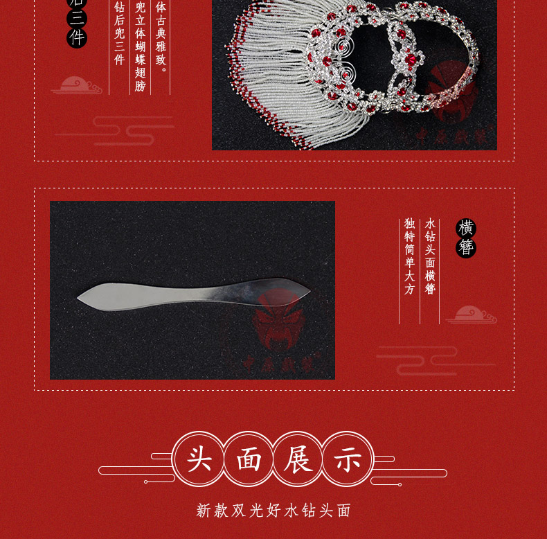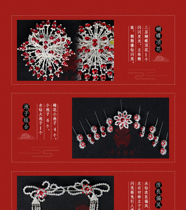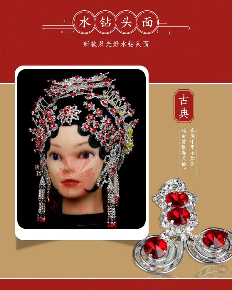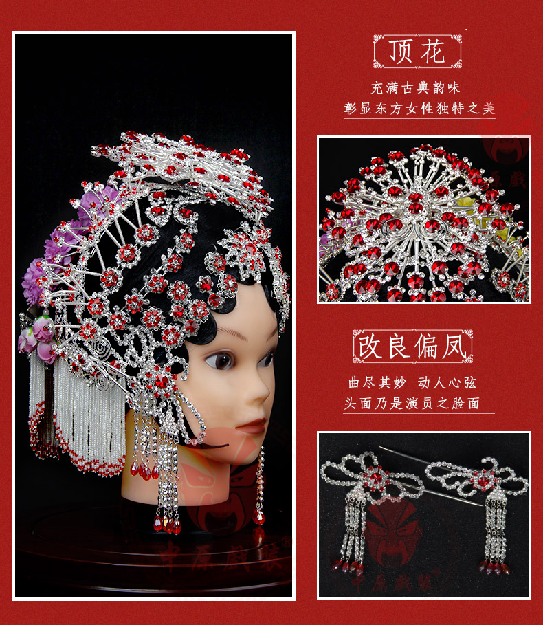商品名称:中原戏装戏曲新款双光水钻头面全套青衣花旦角小姐古装头饰品整头