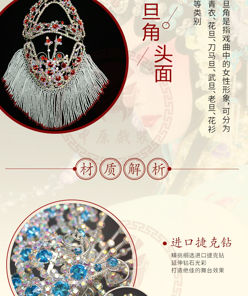 商品名称:中原戏装戏曲戏剧青衣花旦头面箱装北京七彩双光进口捷克水钻头饰