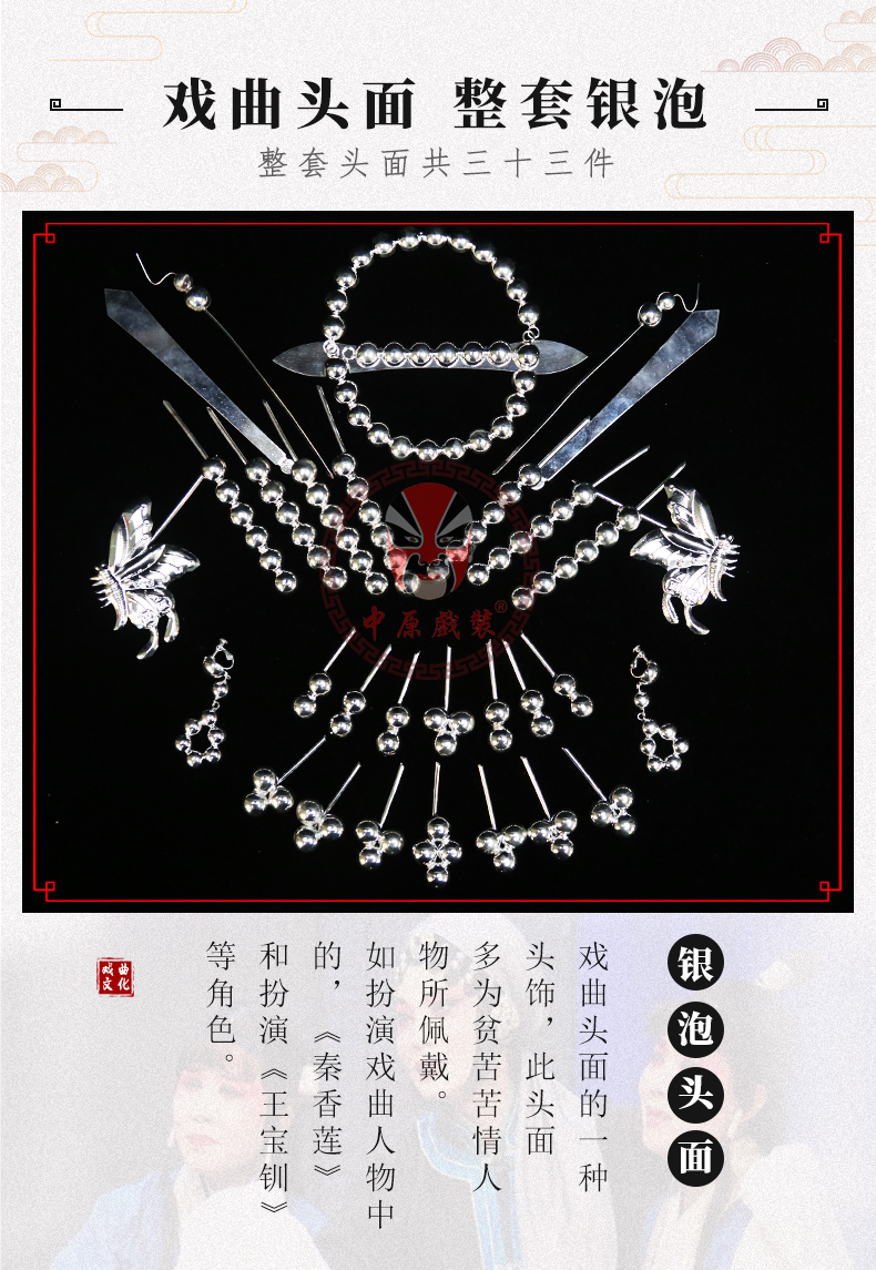 商品名称:中原戏装戏曲银泡头面银锭泡子京剧戏剧青衣王宝钏秦香莲包整头饰