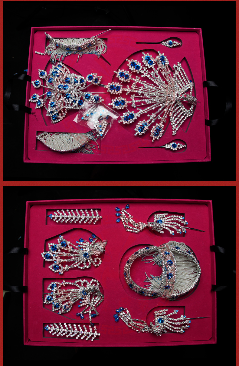 商品名称:中原戏装戏曲双光七彩水钻头面全套京式箱装青衣花旦小姐头饰整箱