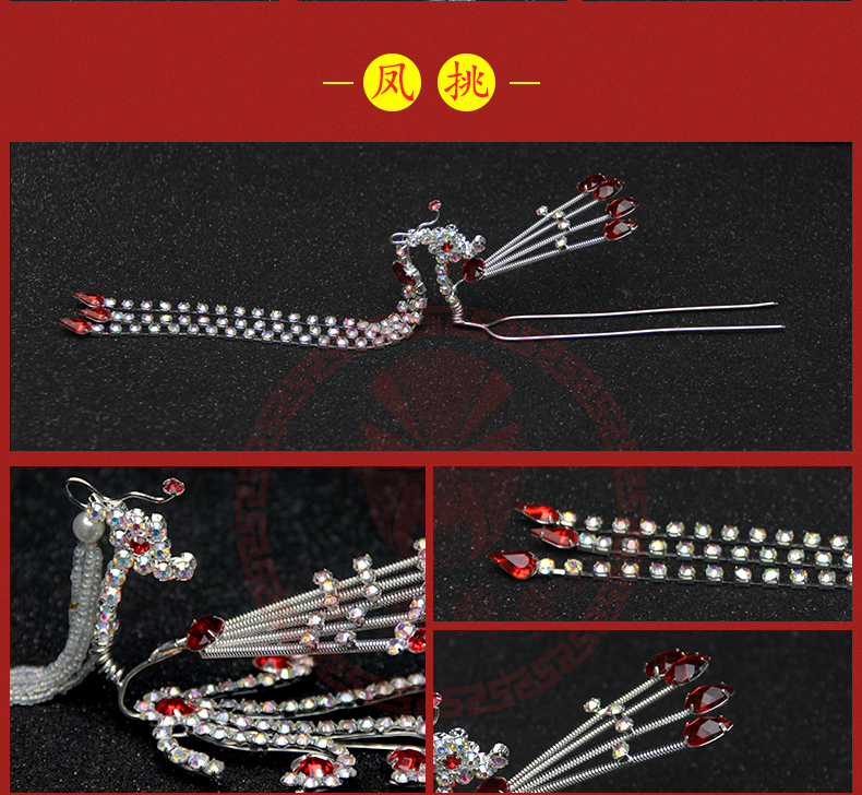 中原戏装戏曲戏剧凤挑木钻头面头饰化妆用品花旦青衣小姐五彩凤挑