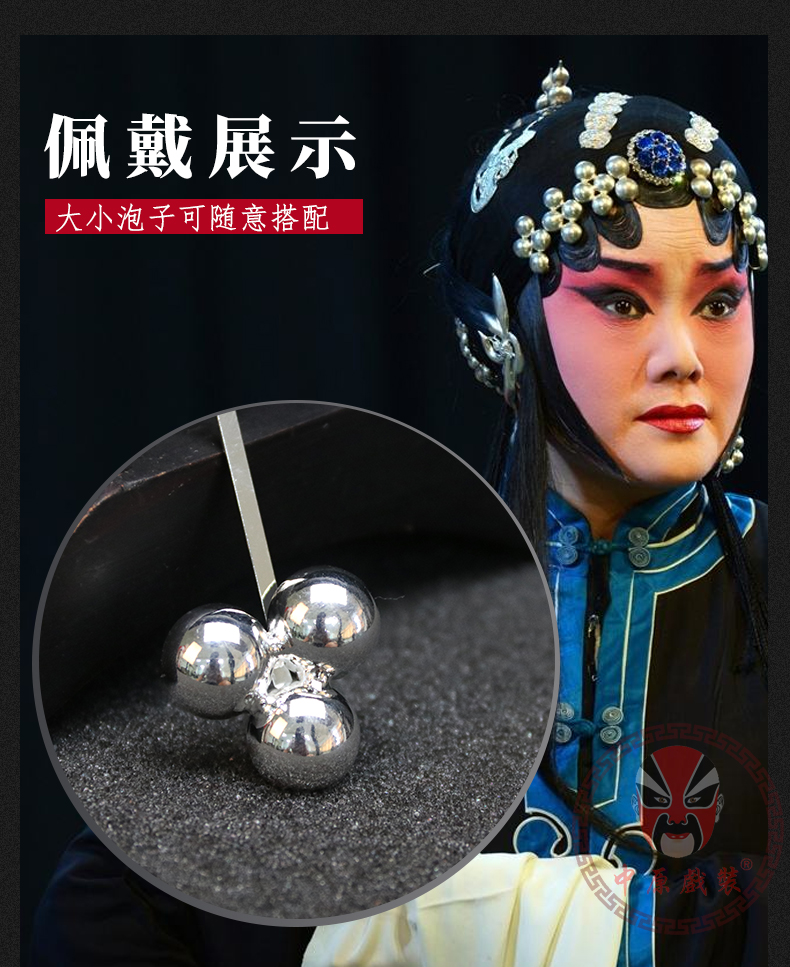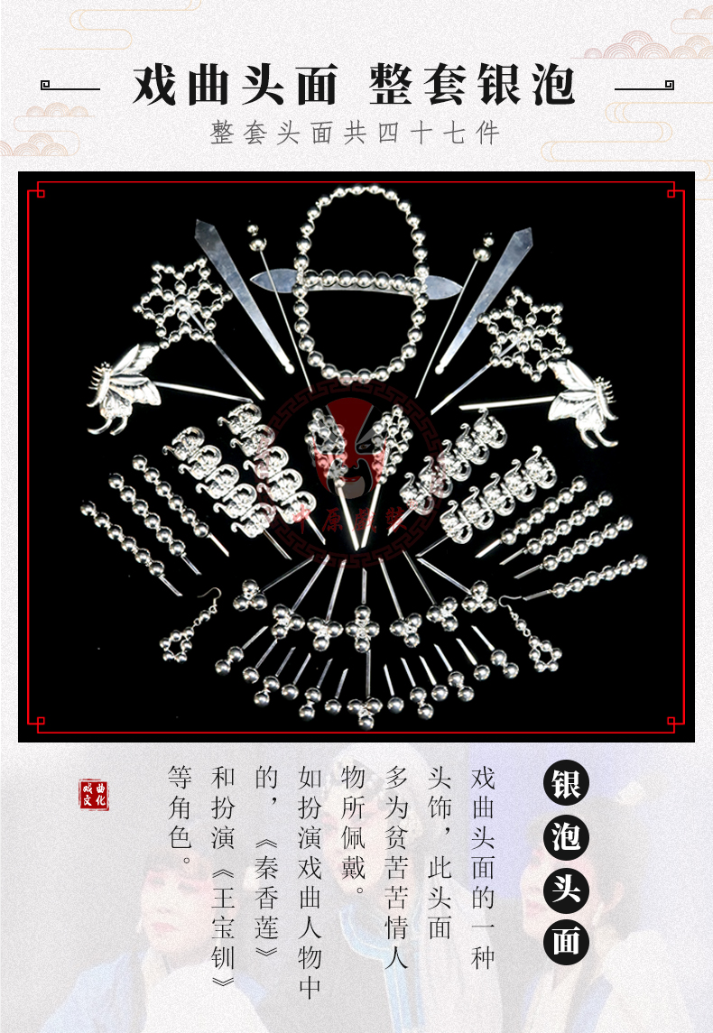 商品名称:中原戏装戏曲银泡头面戏剧京剧王宝钏银锭泡子青衣头面秦香莲头饰