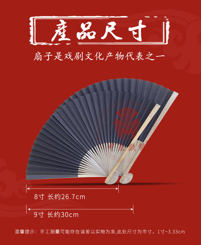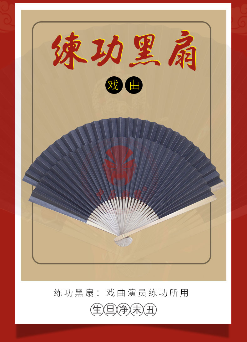 商品名称:中原戏装戏曲练功扇黑色折扇戏剧小生老生须生功夫扇晨练健身扇子