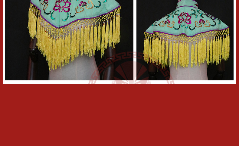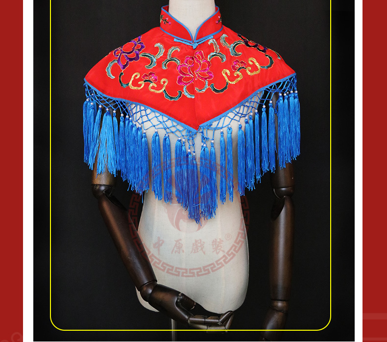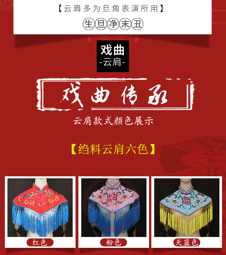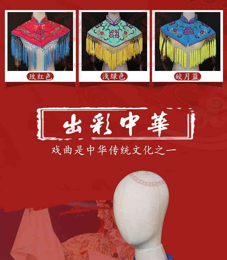 商品名称:中原戏装戏曲云肩绣花京剧舞台演出服装古装花木兰宫女兵衣披肩