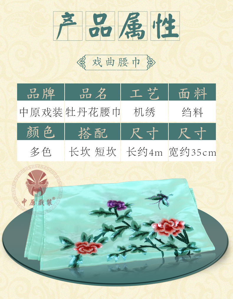 商品名称:中原戏装戏曲丫鬟绣花腰巾子花旦小姐古装小衣包袄裤配件腰带腰绸