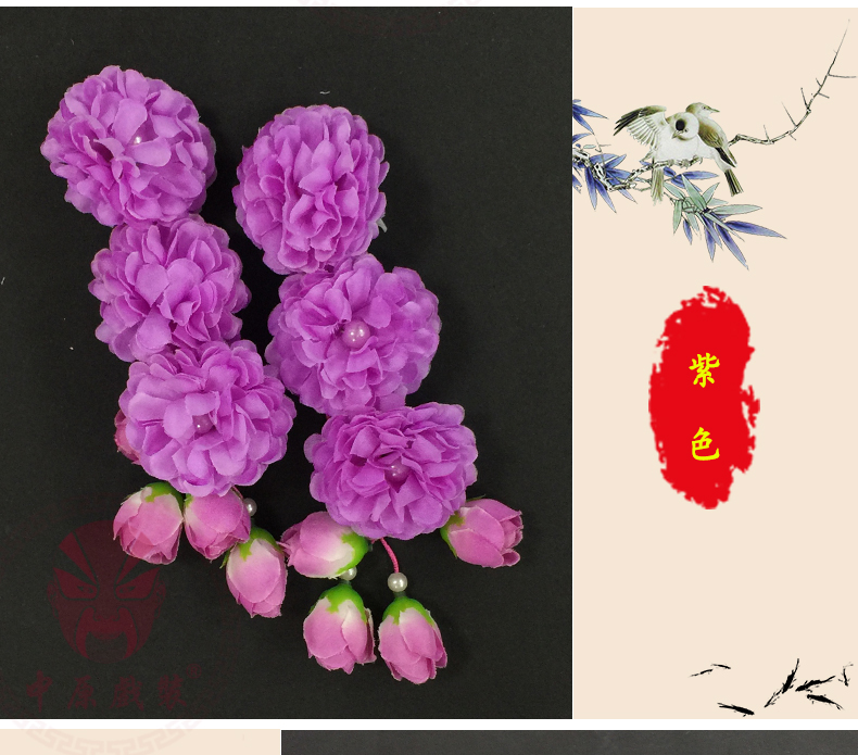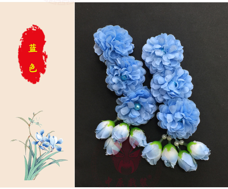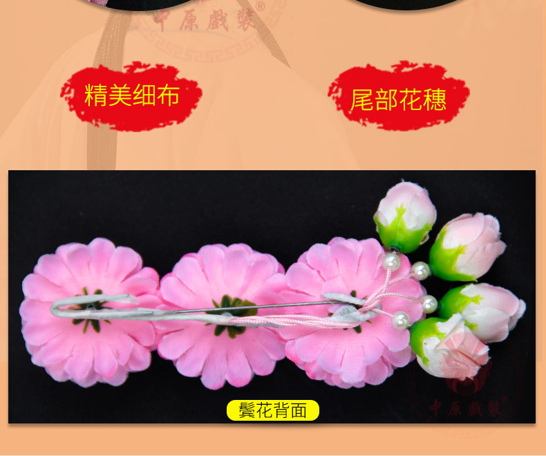 商品名称:中原戏装戏曲鬓花新款三连朵京剧花旦小姐头花戏剧丫鬟头饰品边花
