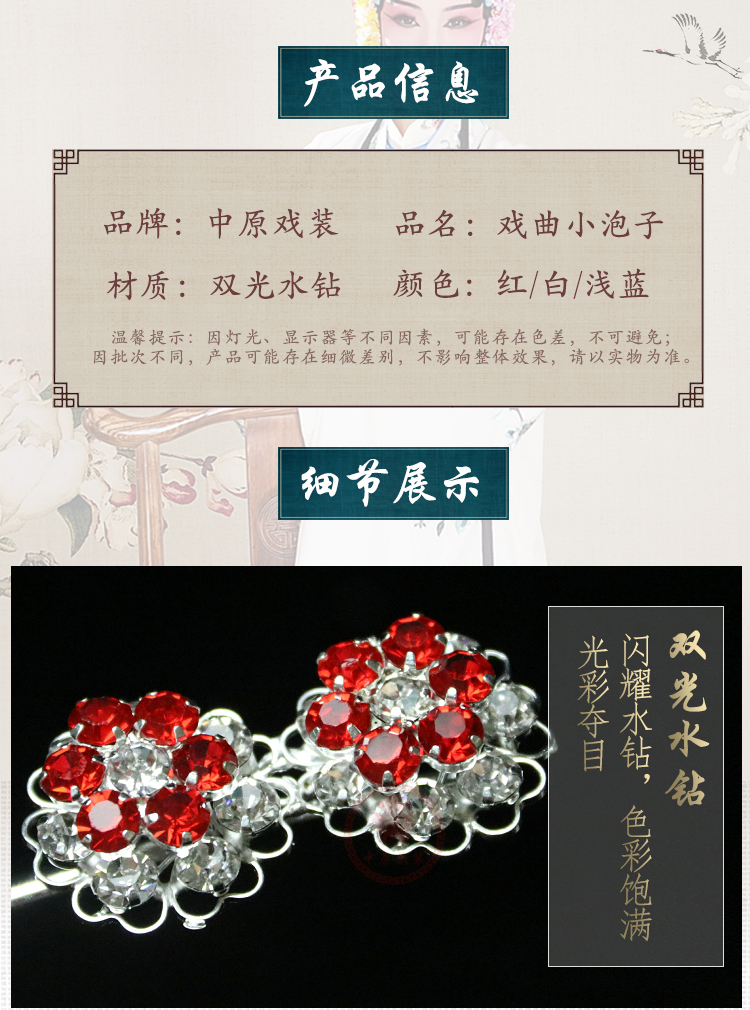 商品名称:中原戏装京剧戏曲头饰青衣花旦小姐双光水钻头面菱形二丁梅花泡子