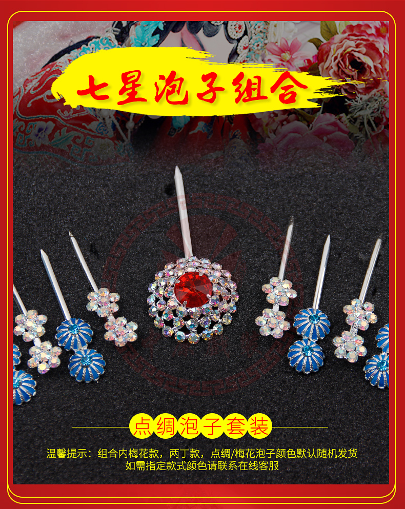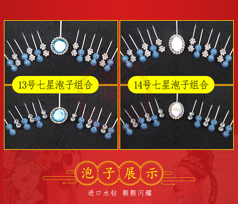 商品名称:中原戏装戏曲七星泡子水钻宝石花京剧青衣花旦角小姐点绸头面头饰