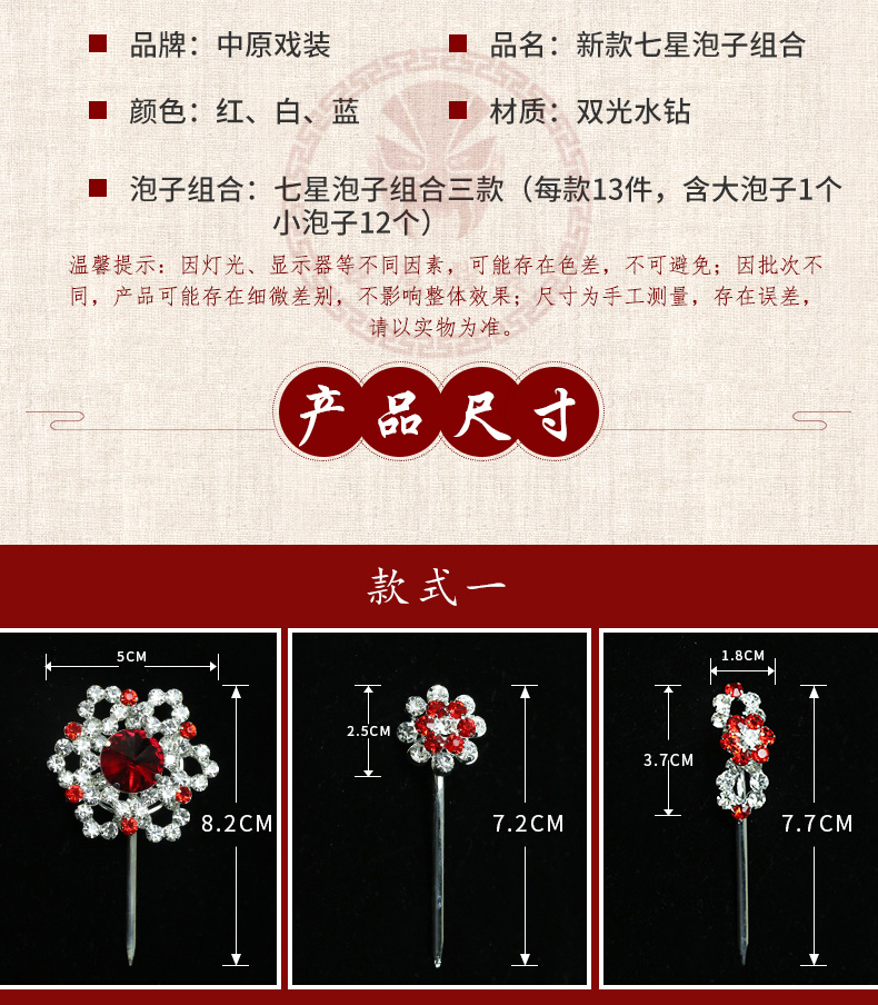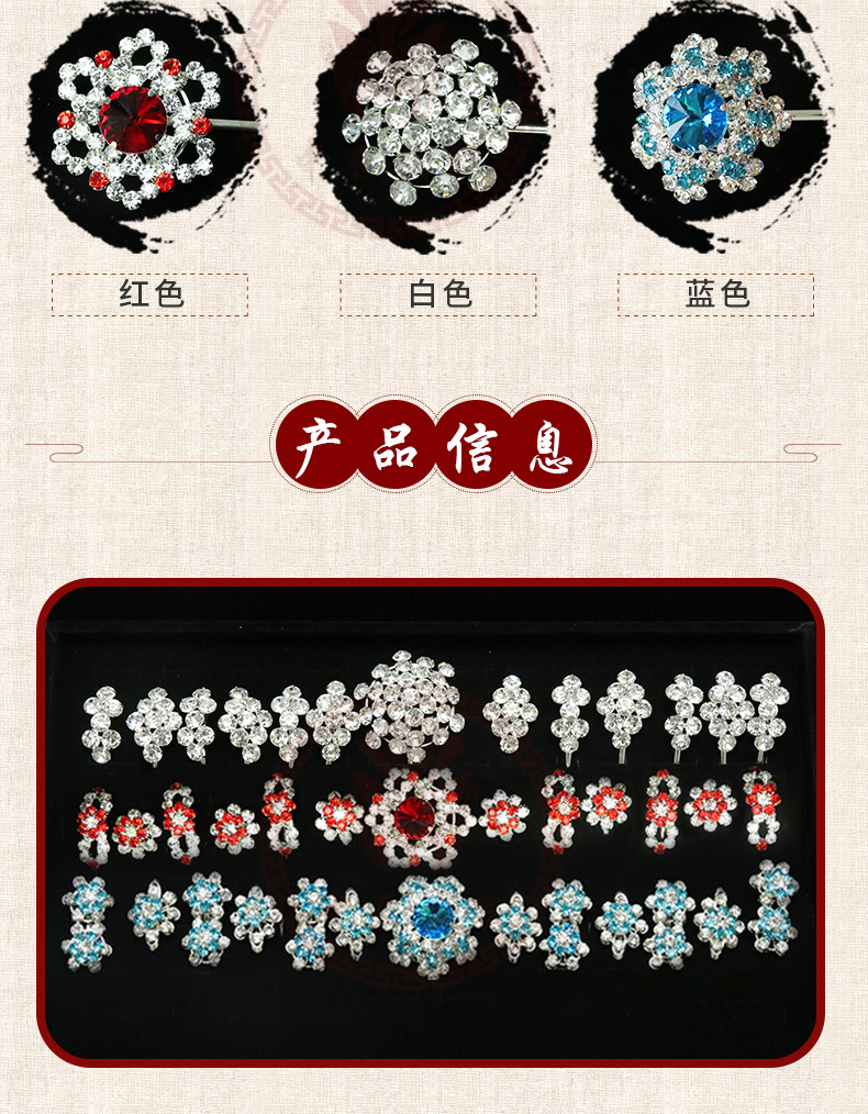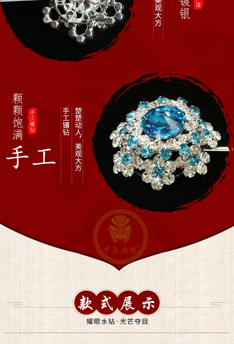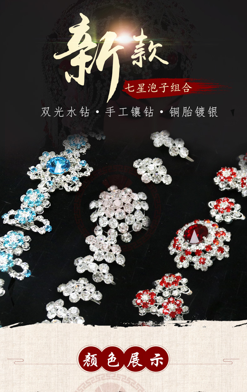 商品名称:中原戏装戏曲七星泡子双光水钻戏剧头饰品花旦小姐头面新款宝石花