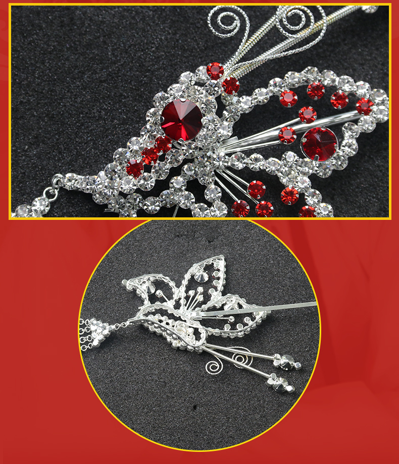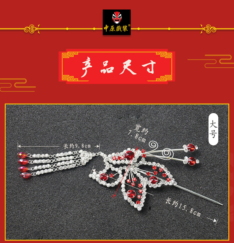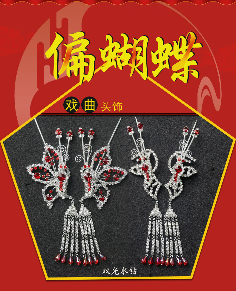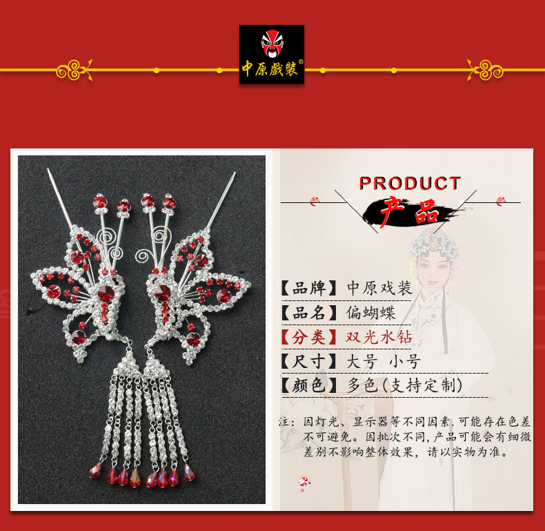商品名称:中原戏装戏曲偏蝴蝶偏花改良偏凤京剧青衣花旦角双光水钻头饰边凤
