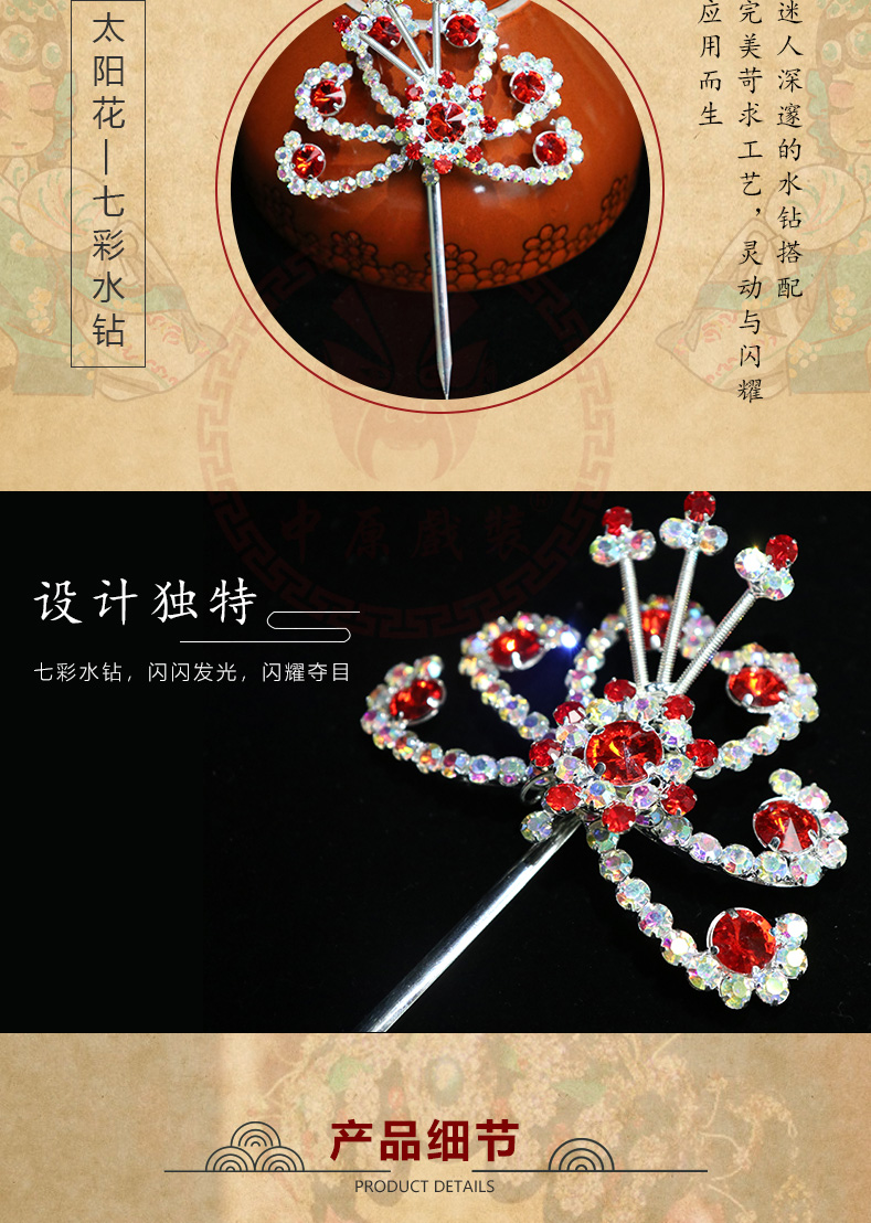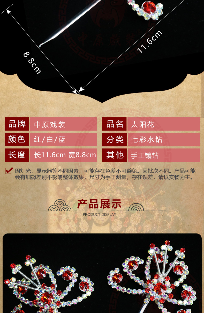 商品名称:中原戏装戏剧戏曲化妆用品头饰花旦青衣小姐头饰双光七彩太阳花