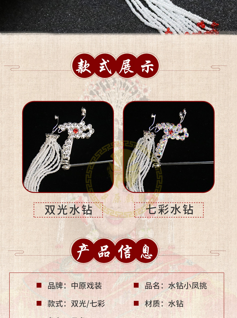 商品名称:中原戏装戏曲头饰水钻小凤挑老旦凤头花旦青衣发簪子戏剧头面