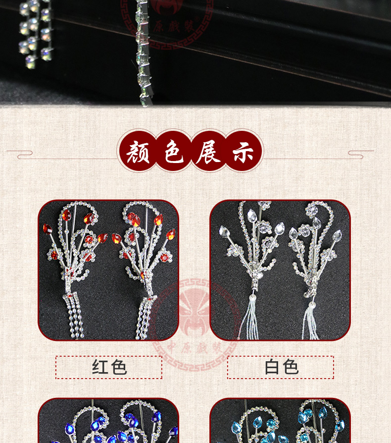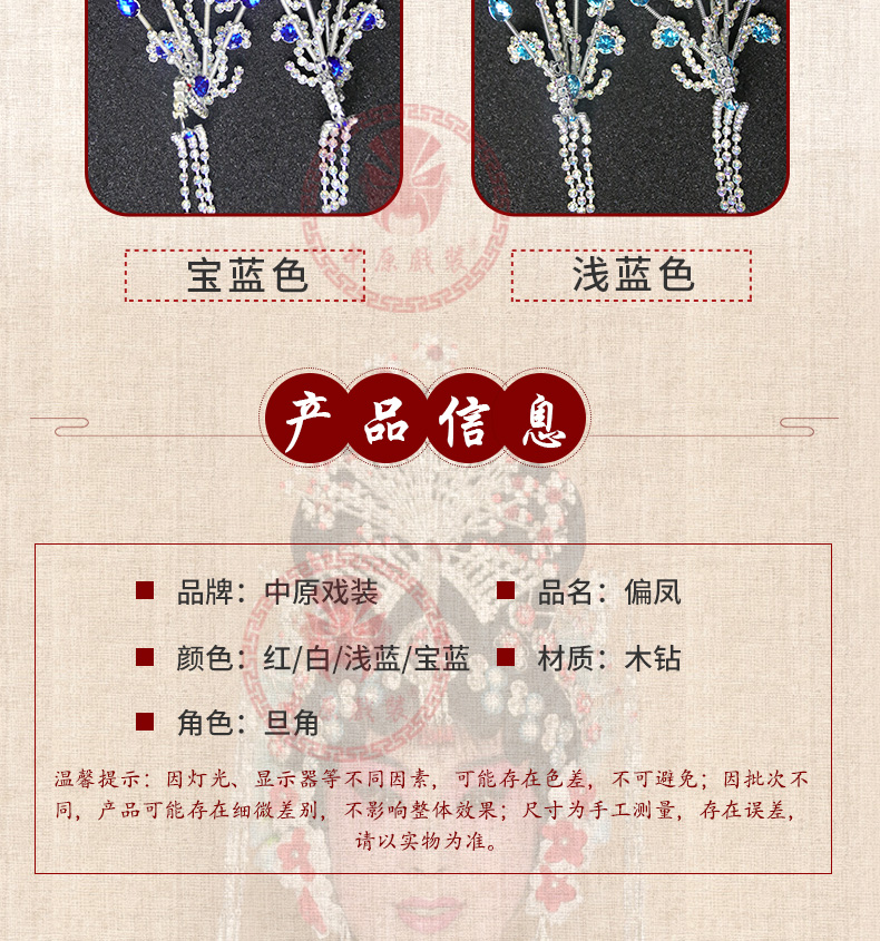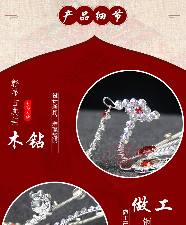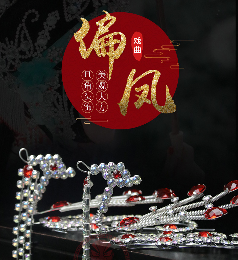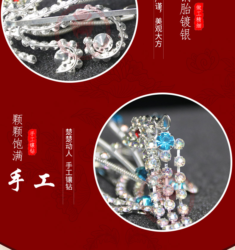 商品名称:中原戏装戏曲京剧豫剧戏剧青衣花旦头饰五彩木钻头面饰品偏花偏凤