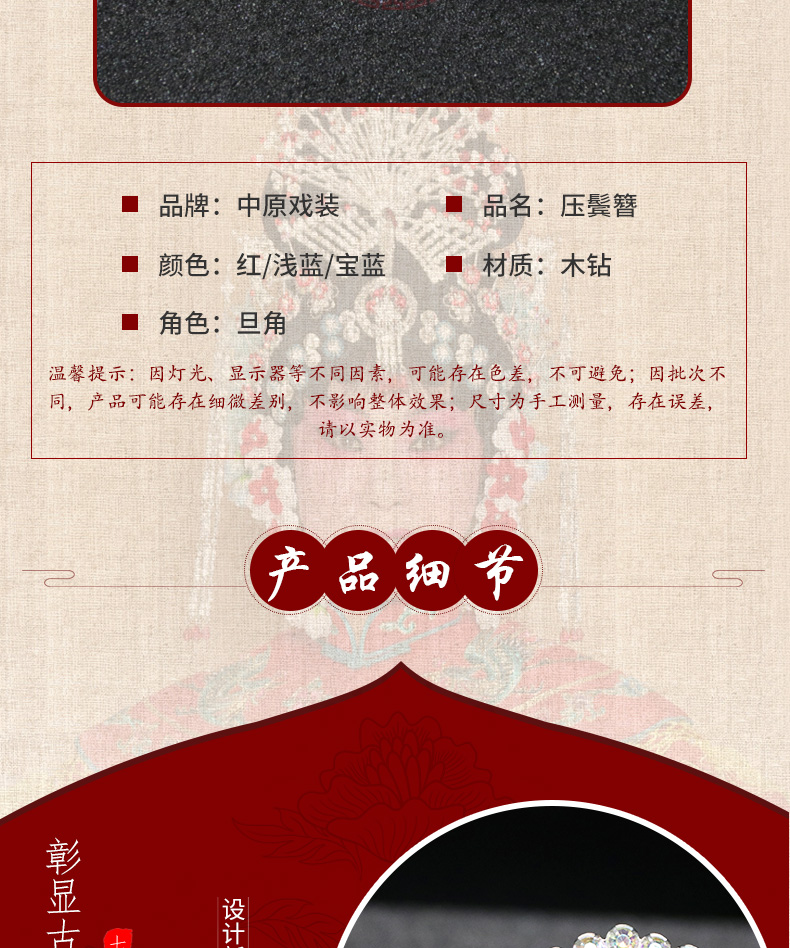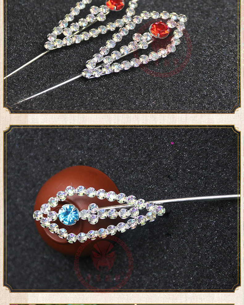 商品名称:中原戏装戏曲压鬓簪京剧戏剧包头用品青衣花旦头饰木钻头面尖簪子