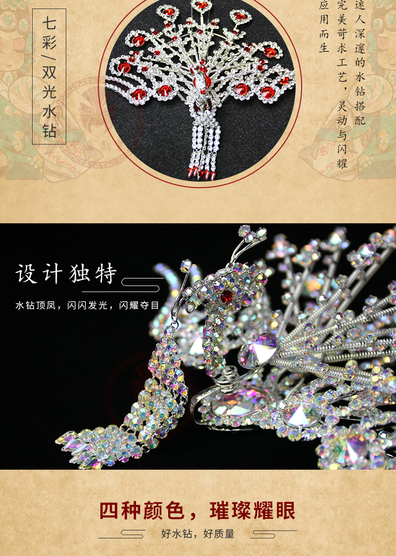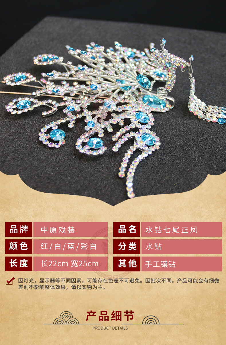 商品名称:中原戏装戏曲正凤戏剧青衣花旦小姐头饰双光七彩水钻头面顶凤