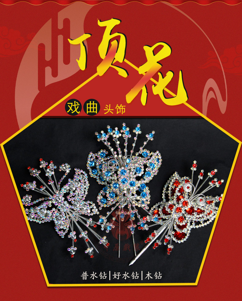 商品名称:中原戏装戏曲大蝴蝶顶花双光七彩水钻头面京剧青衣花旦小姐包头饰