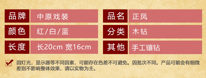 商品名称:中原戏装戏剧戏曲木钻正凤戏剧用品京剧豫剧花旦小姐头面头饰大凤