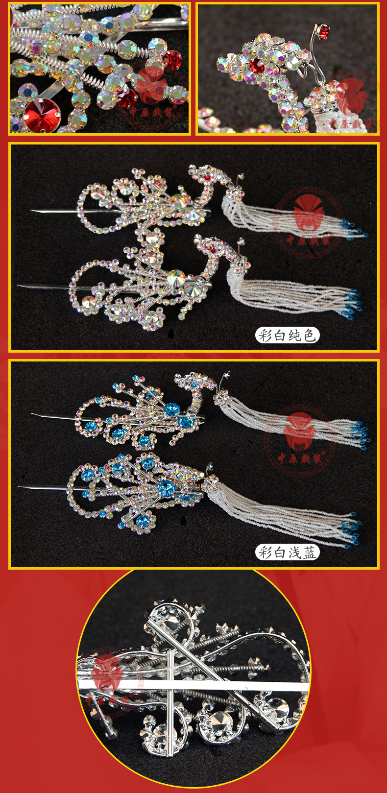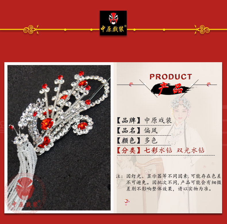 商品名称:中原戏装戏曲京剧青衣花旦小姐水钻头饰戏剧双光七彩水钻偏凤边凤