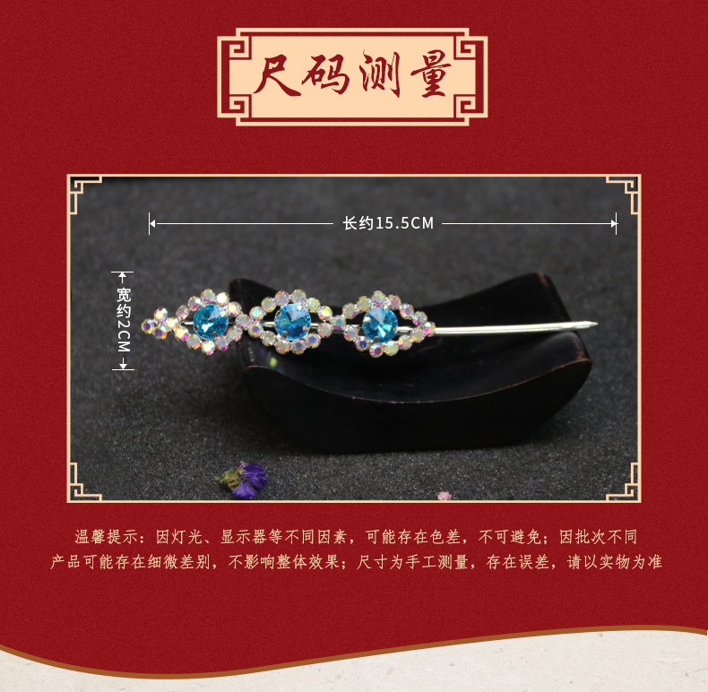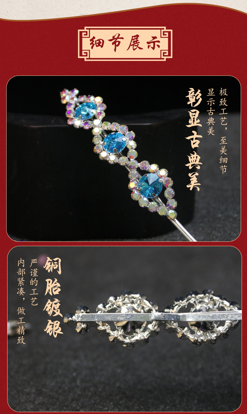 商品名称:中原戏装戏曲青衣花旦头饰压鬓簪双光七彩水钻京剧戏剧头面三连珠