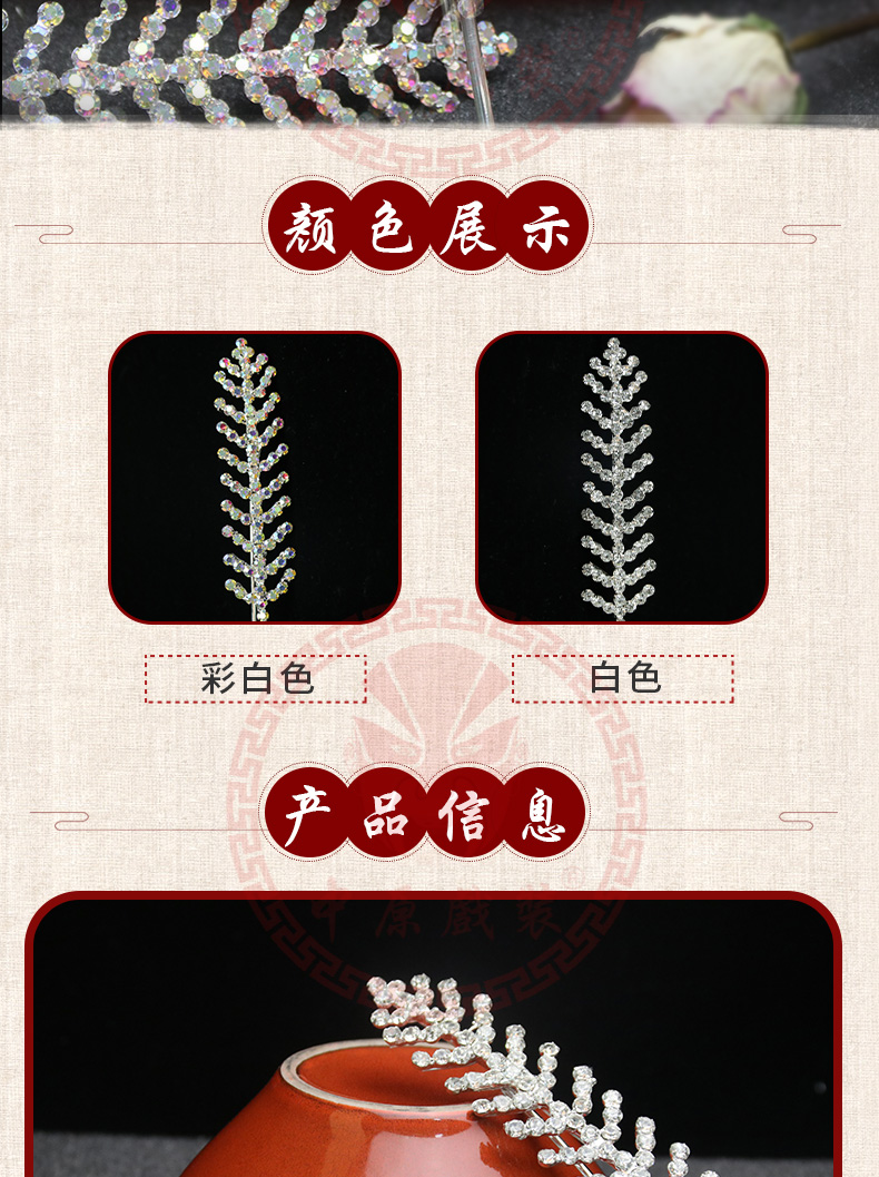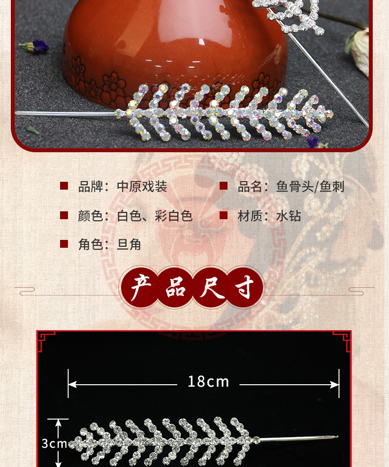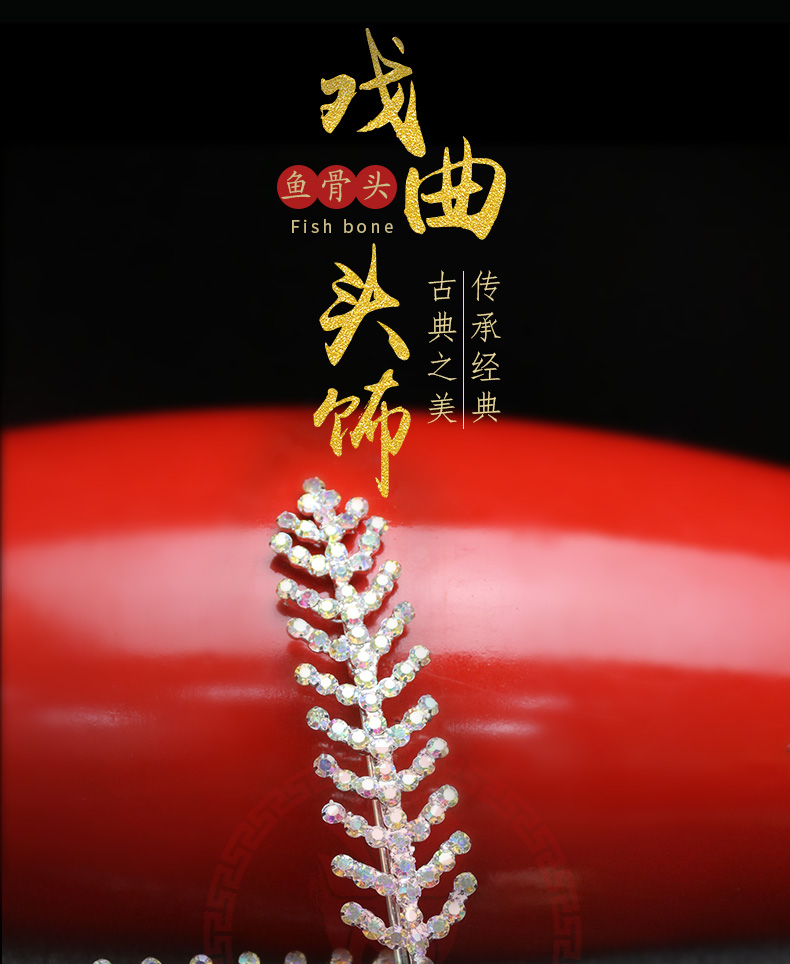 商品名称:中原戏装戏曲鱼刺鱼骨头古装头饰青衣花旦包头水钻头面压鬓簪麦穗