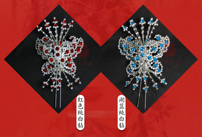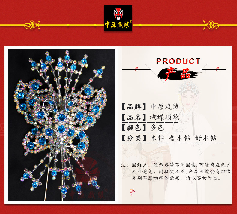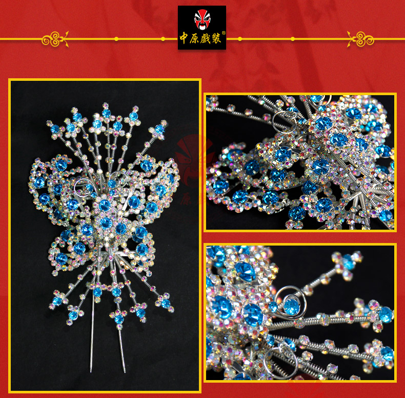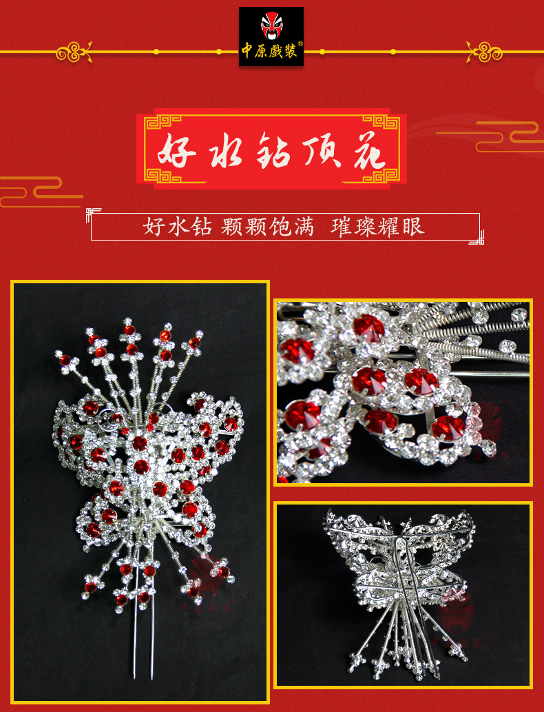 商品名称:中原戏装戏曲大蝴蝶顶花双光七彩水钻木钻头面京剧青衣花旦包头饰