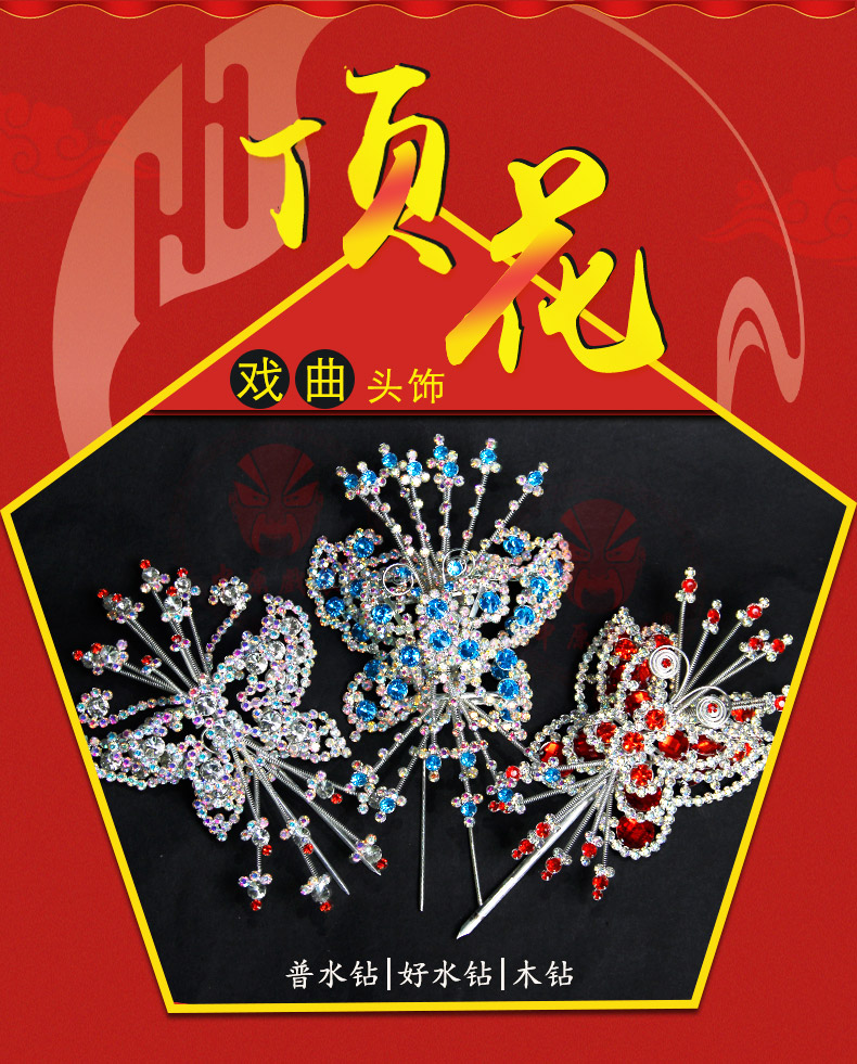中原戏装戏曲大蝴蝶顶花双光七彩水钻木钻头面京剧青衣花旦包头饰