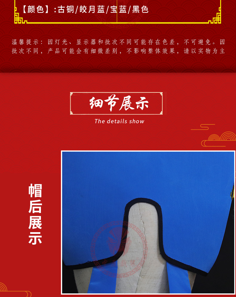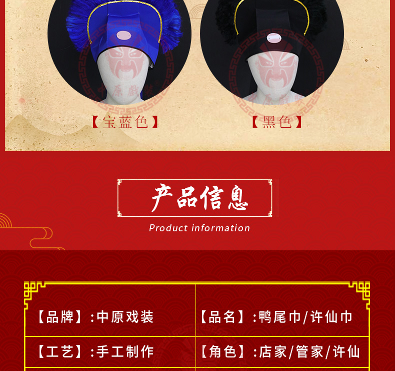 商品名称:中原戏装戏曲戏剧戏帽鸭尾巾老生贫生穷书生巾帽管家老家院许仙巾