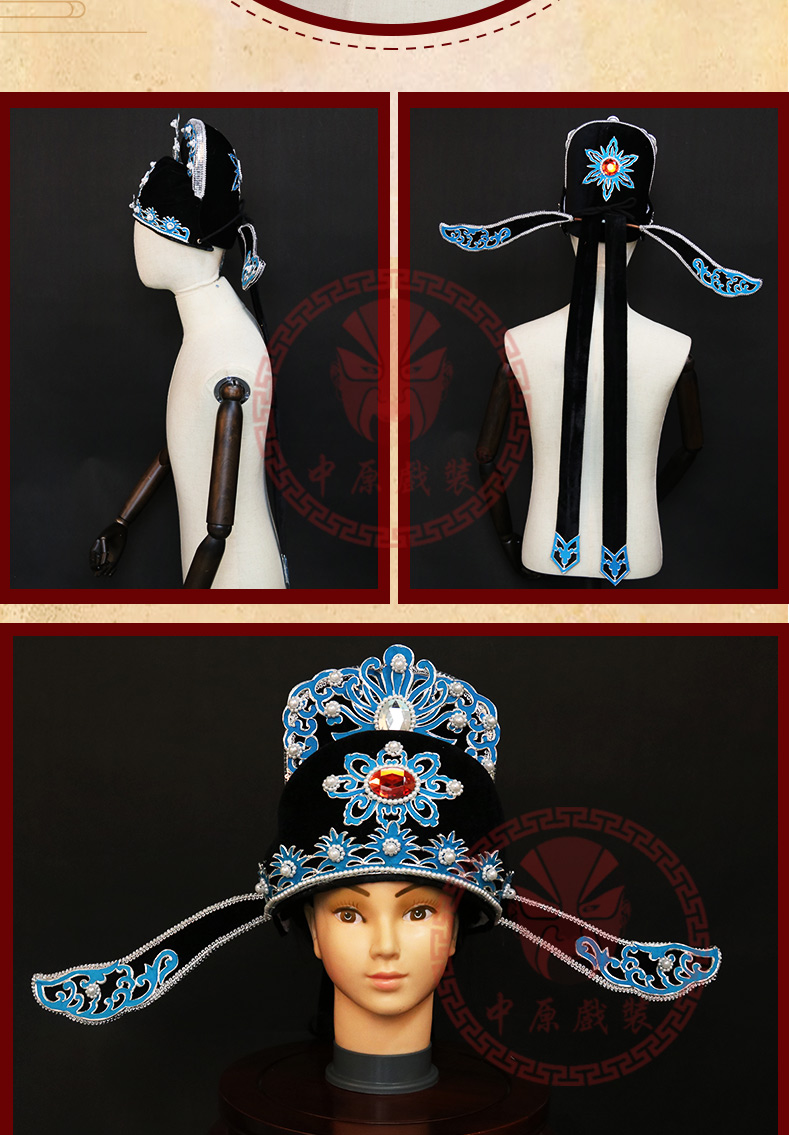 商品名称:中原戏装戏曲改良小生巾戏剧盔头京越剧新款古装解元巾公子小生帽