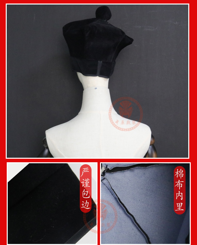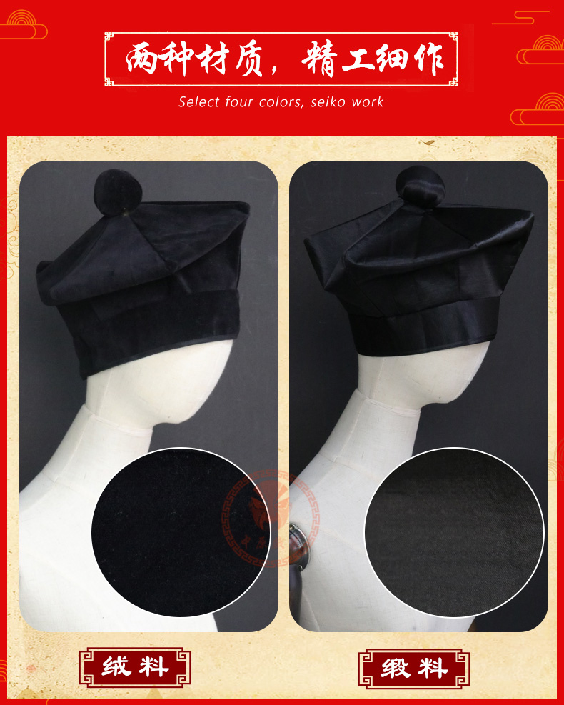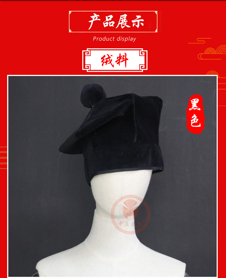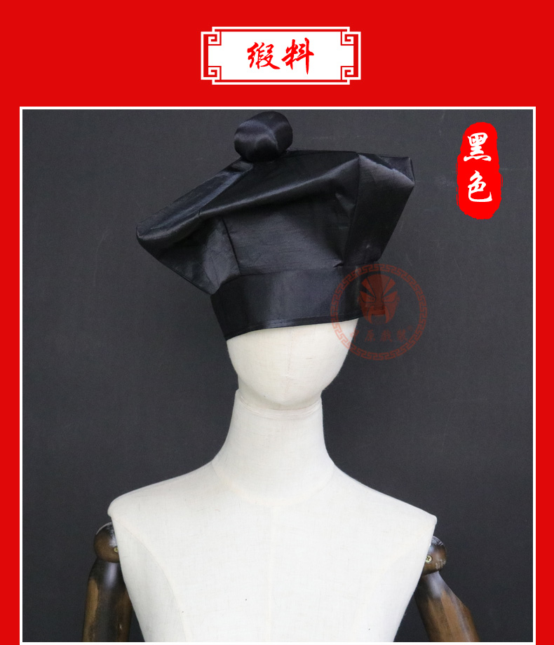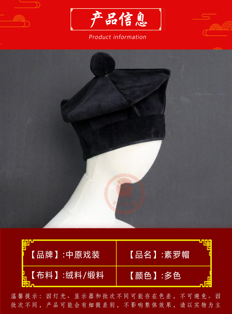 商品名称:中原戏装戏曲戏剧素罗帽家丁小二管家书童唐伯虎武松帽六角八角帽