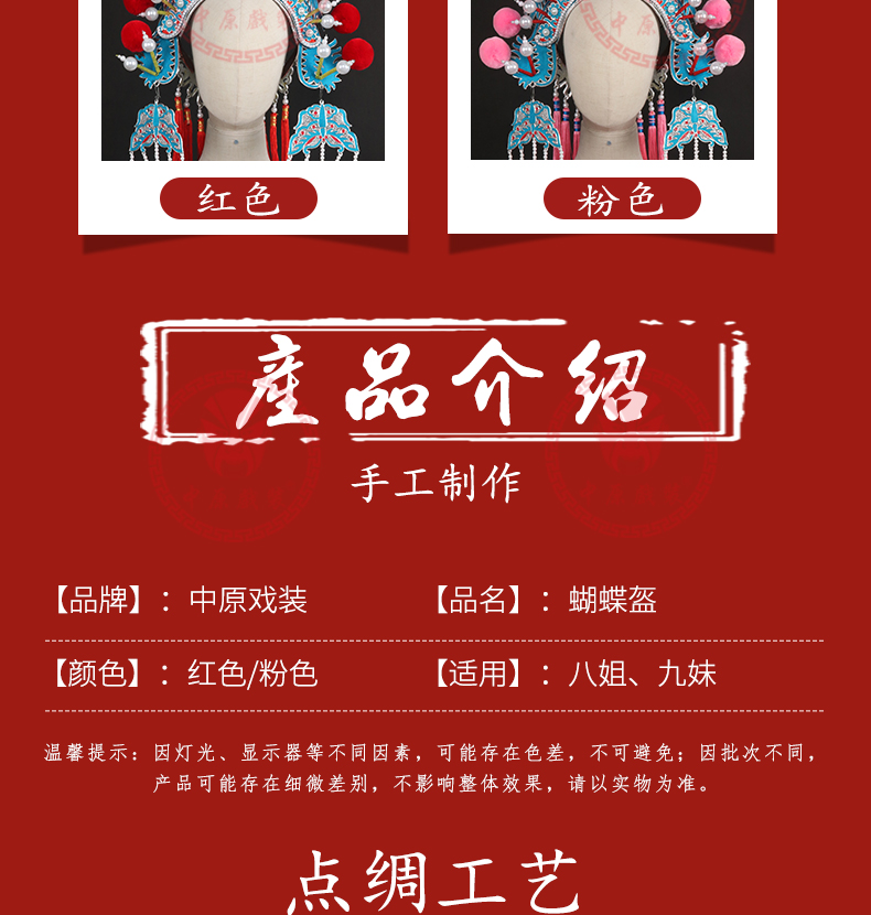 商品名称:中原戏装蝴蝶盔京剧戏曲杨家将八姐九妹女将刀马旦扈三娘郡主帽