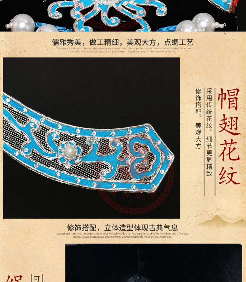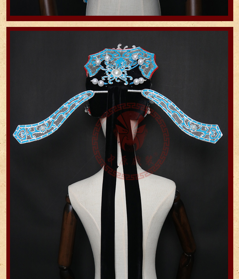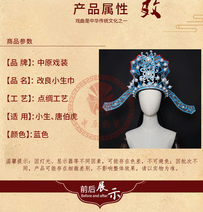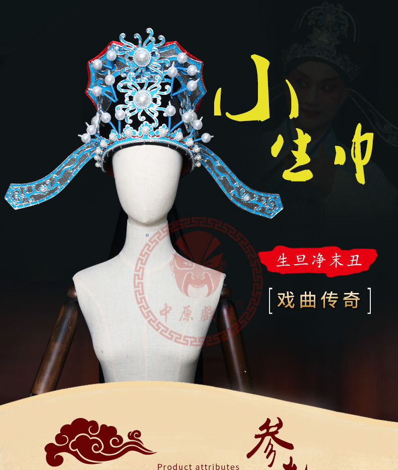 商品名称:中原戏装戏曲改良小生巾京越剧新款古装解元巾公子小生帽戏剧盔头