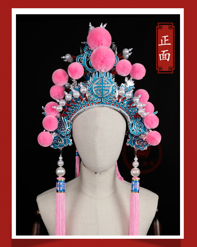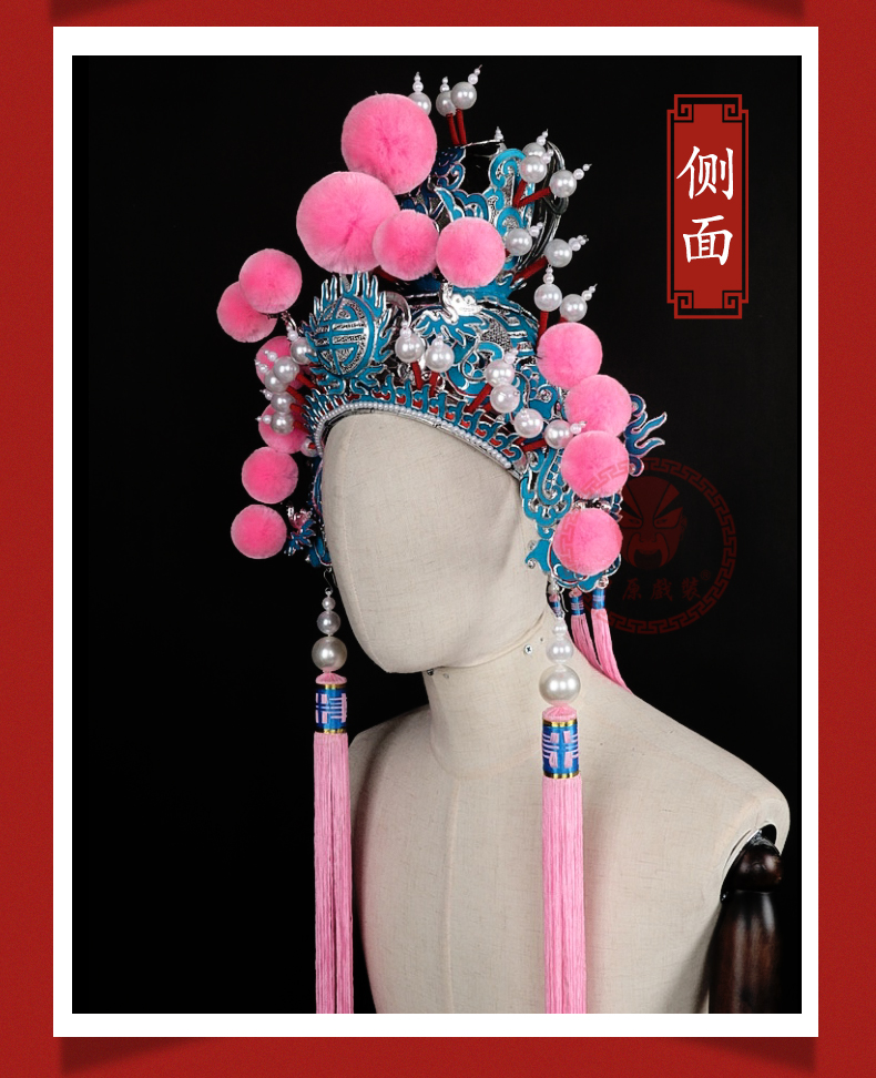 商品名称:中原戏装高档小王盔戏剧戏曲盔头京剧帽子紫金冠点稠粉色太子盔