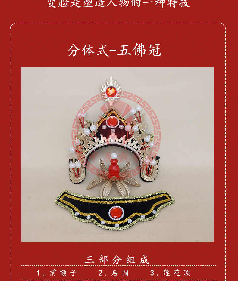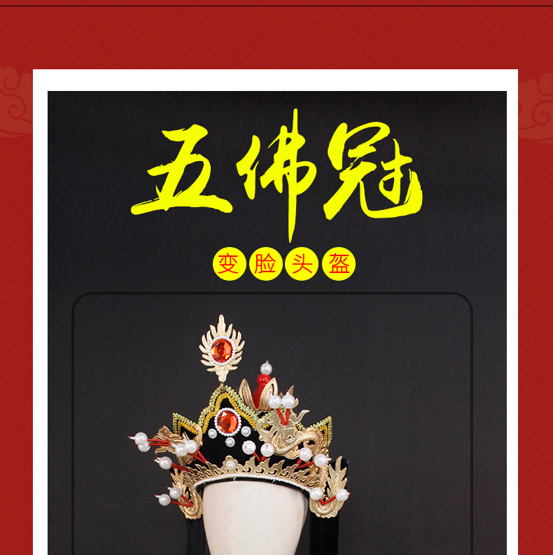 商品名称:中原戏装川剧变脸帽子五佛冠变脸头盔戏曲戏剧变脸专用品道具内帽