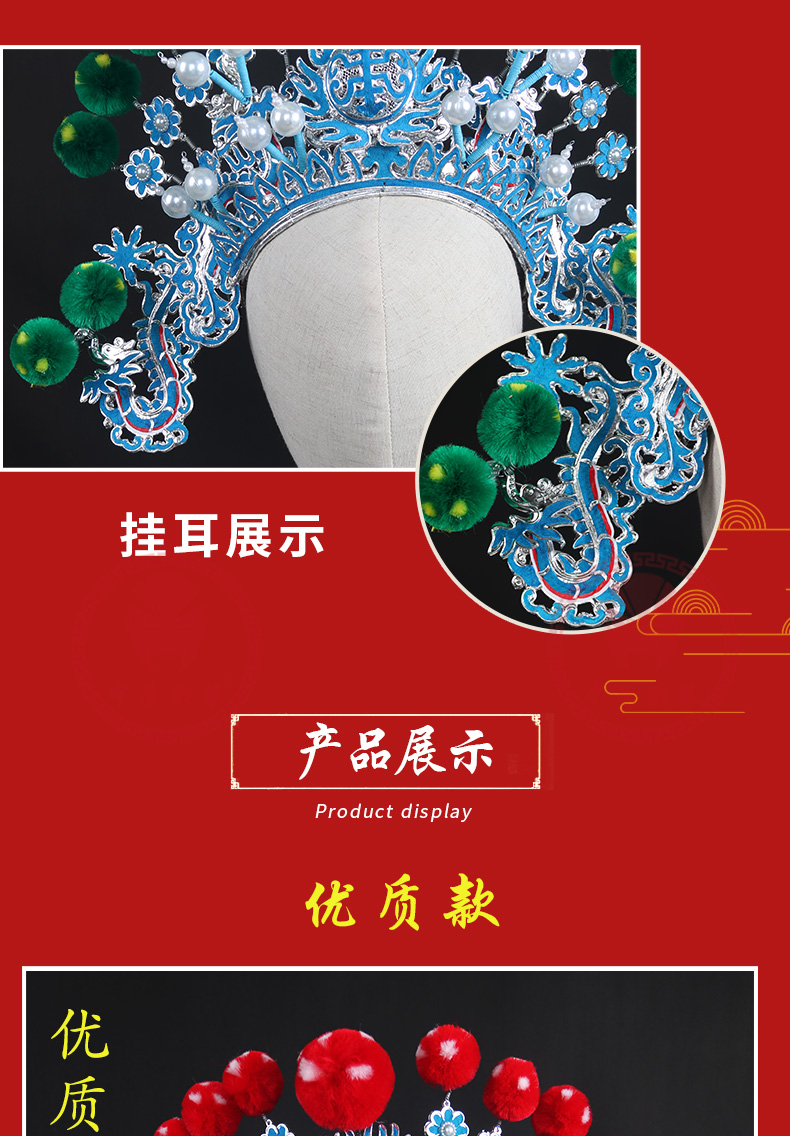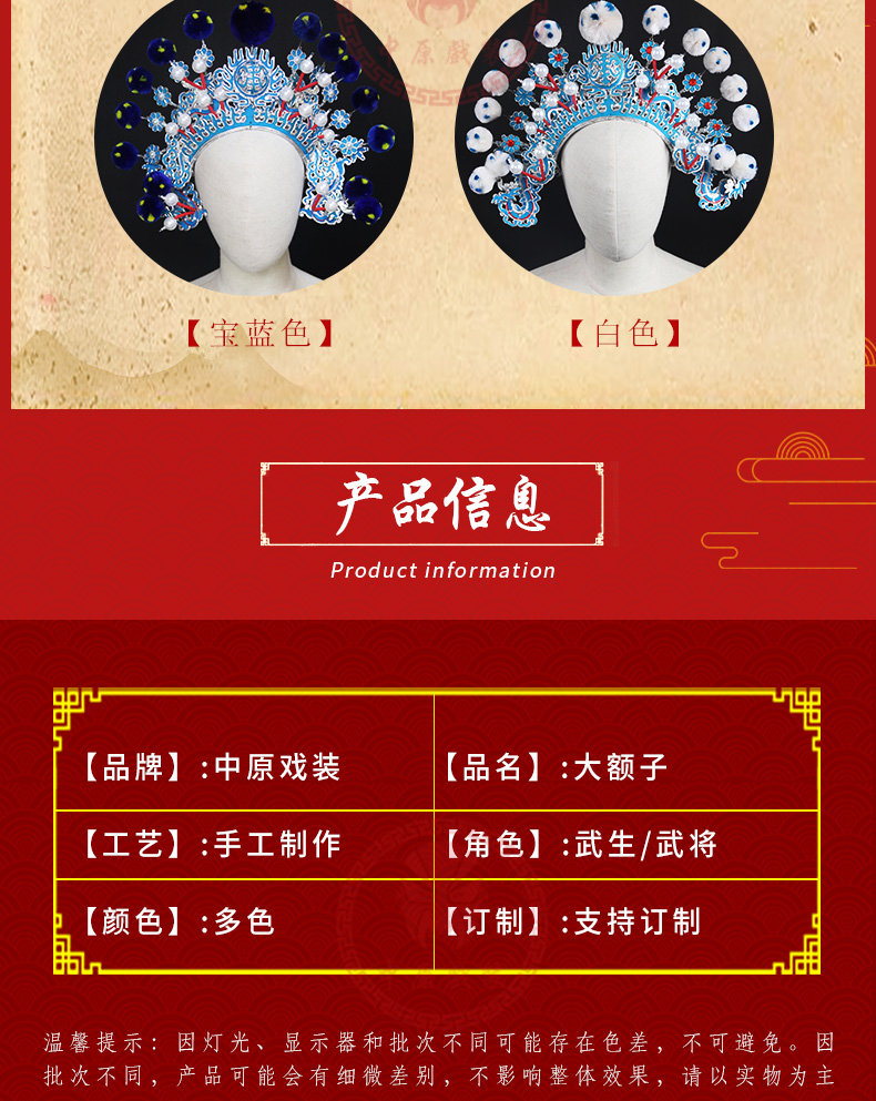 商品名称:中原戏装大列子京剧戏曲戏剧古装舞台演出用品戏帽武生将军大额子