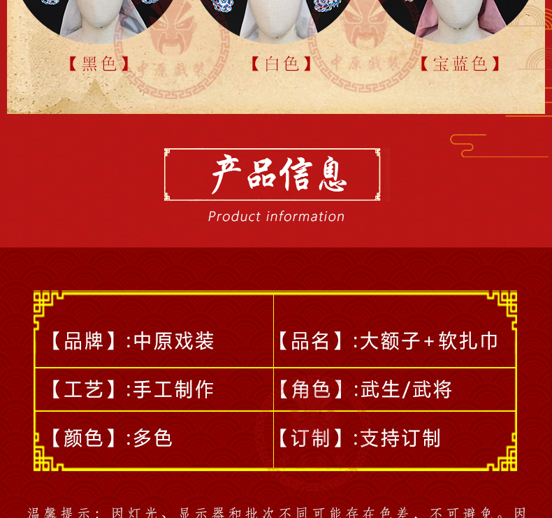 商品名称:中原戏装软扎巾京剧服装戏曲用品戏曲服装戏剧用品武生武将大列子