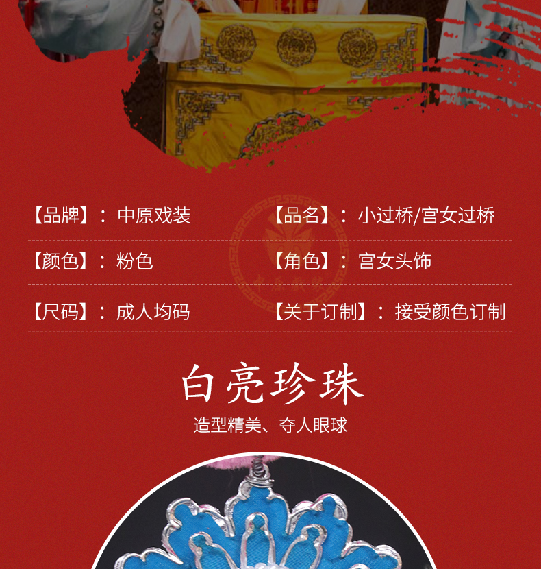 商品名称:中原戏装戏曲小过桥京剧豫剧舞台装戏剧用品盔帽小过梁宫女额子