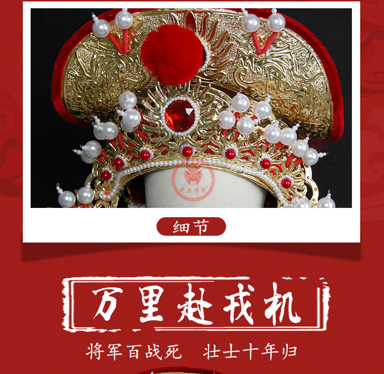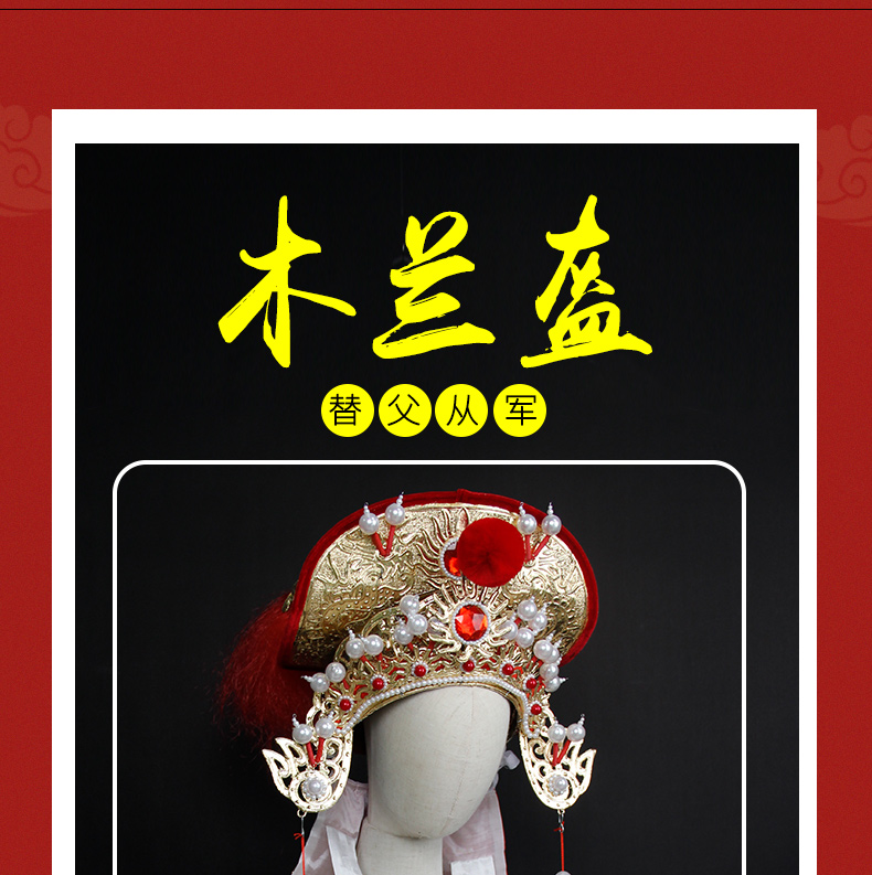 商品名称:中原戏装戏曲豫剧花木兰头盔京川剧变脸头盔帽子刘大哥讲话木兰盔