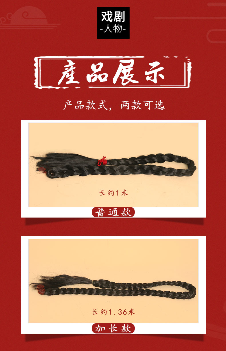 商品名称:中原戏装假发长辫子古装戏剧演出道具戏曲用品大辫子银环铁梅辫子