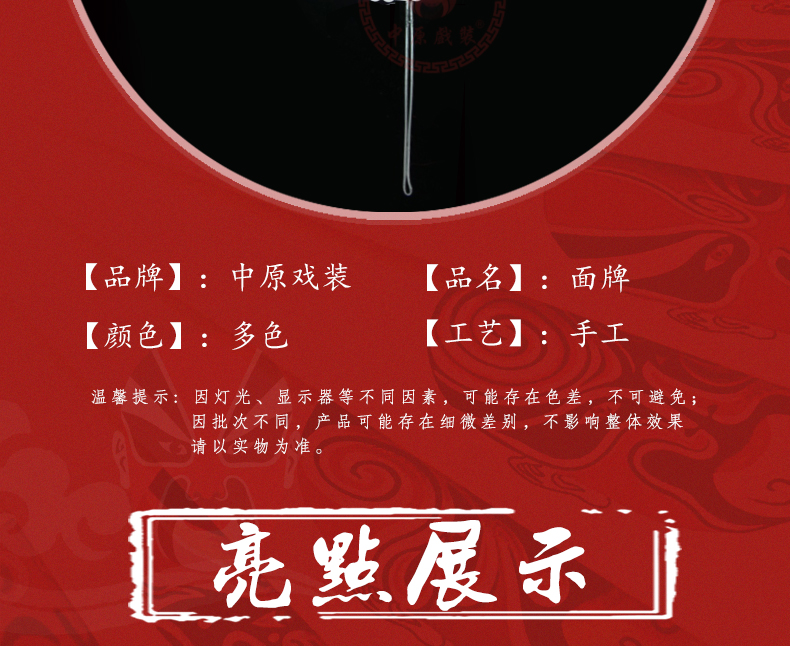 商品名称:中原戏装面牌戏剧戏曲用品京剧越剧武生英雄球武旦头饰头盔配件