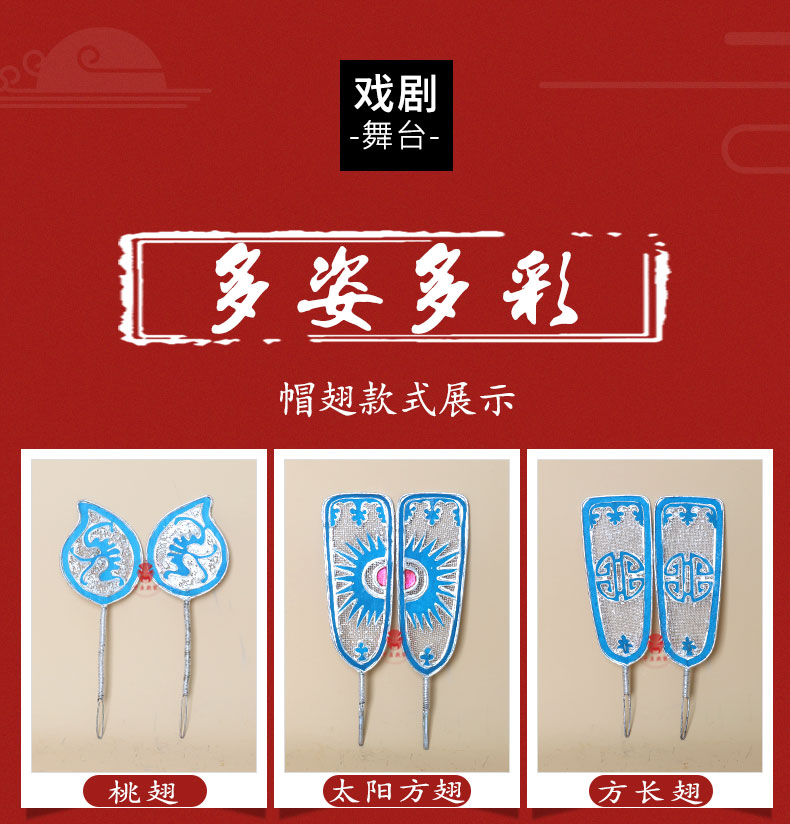 商品名称:中原戏装戏剧戏曲演出配件小生帽叶子男帽县令官帽帽翅圆翅相纱