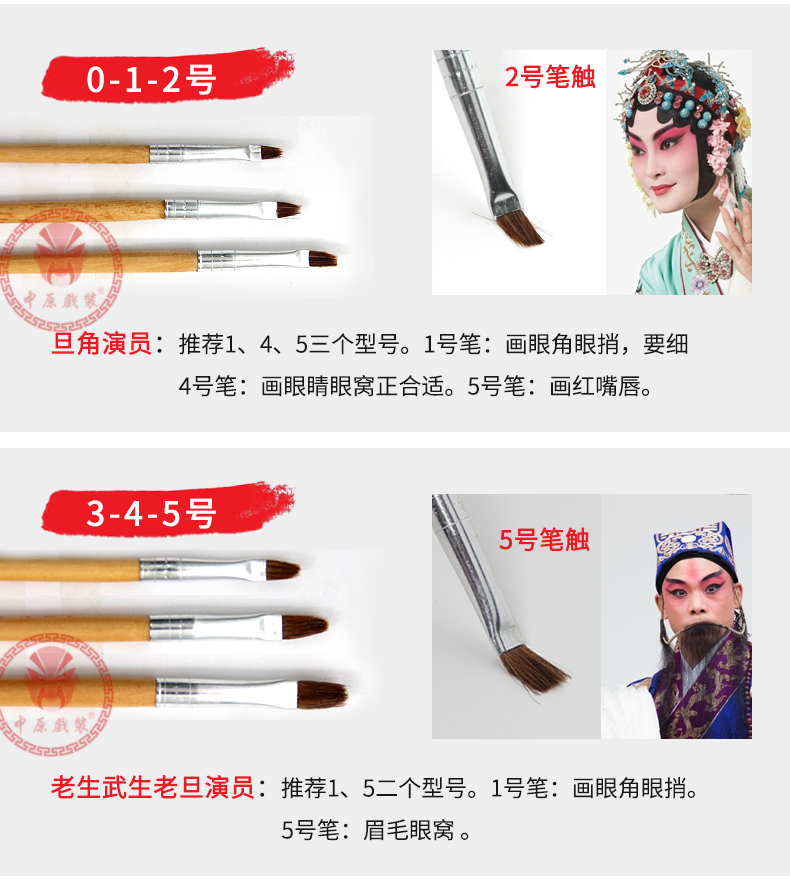 中原戏装戏曲化妆笔戏剧专用狼毫化妆笔京剧画脸谱花脸化妆笔套装