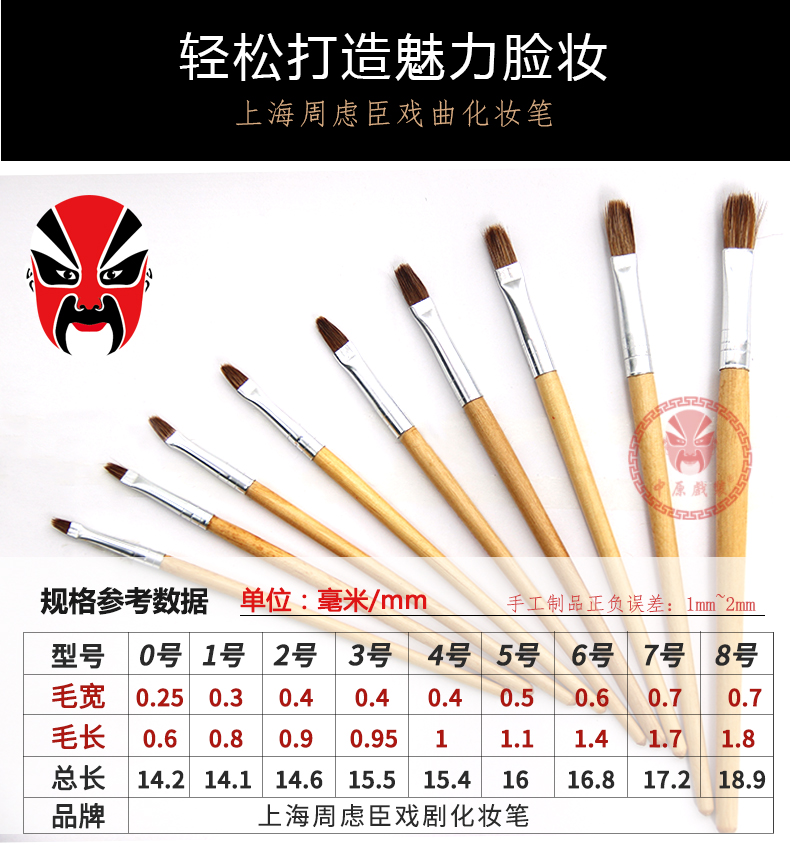 商品名称:中原戏装戏曲化妆笔戏剧专用狼毫化妆笔京剧画脸谱花脸化妆笔套装