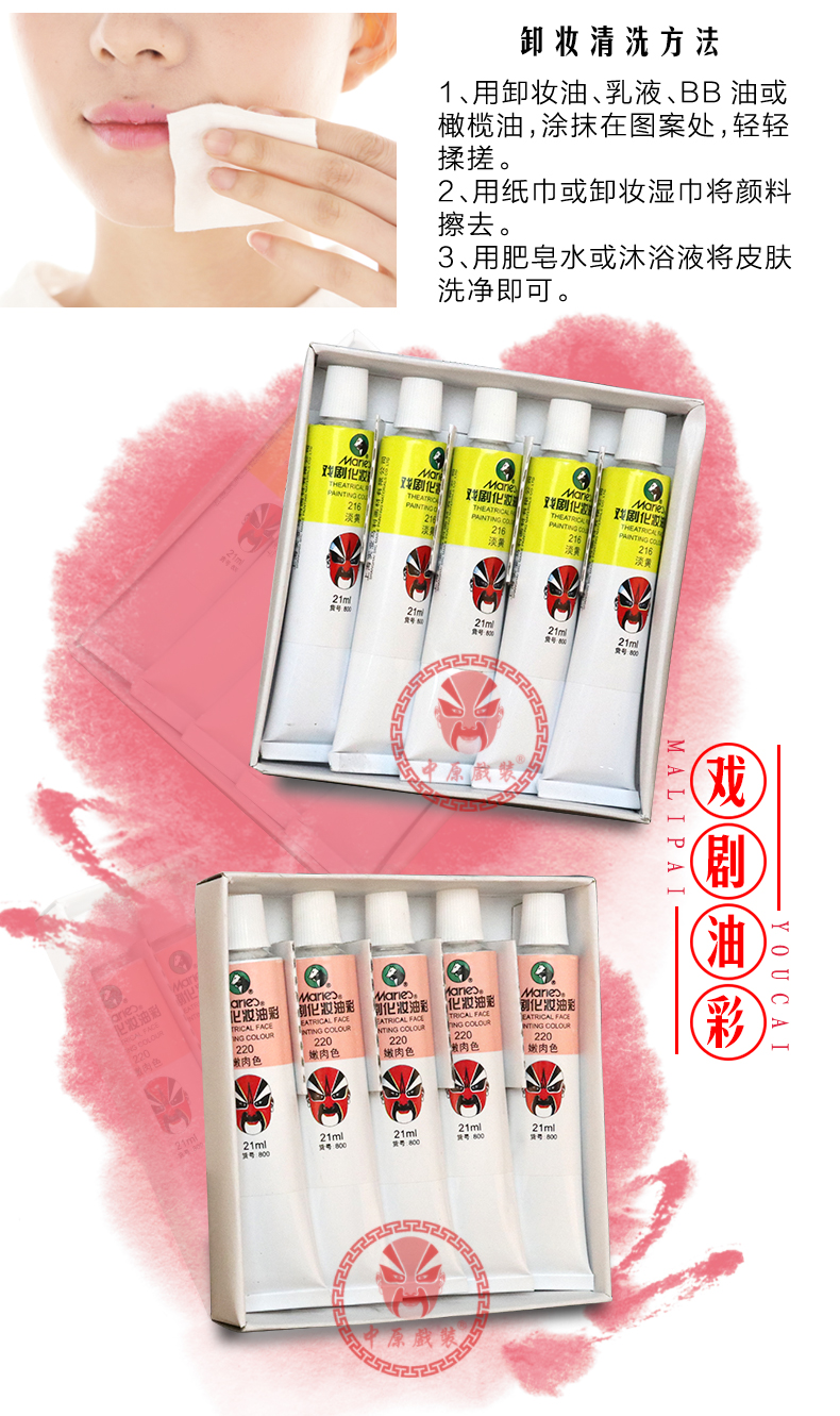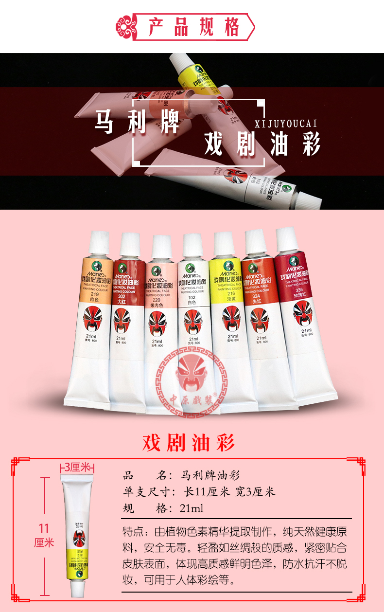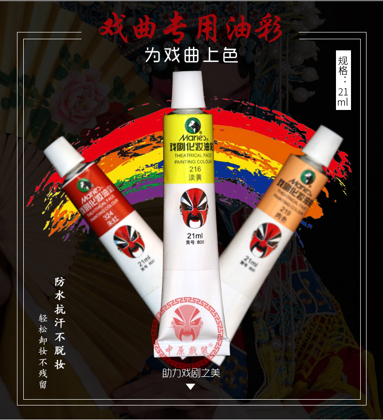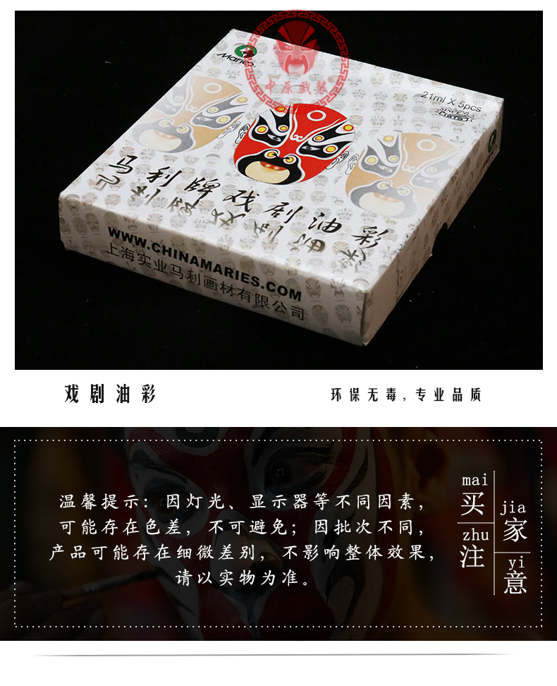 商品名称:中原戏装戏曲剧马利牌油彩京剧脸谱小丑脸部化妆用品人体彩绘颜料