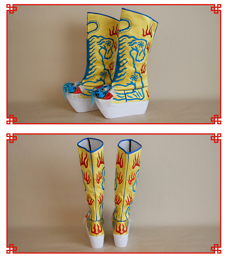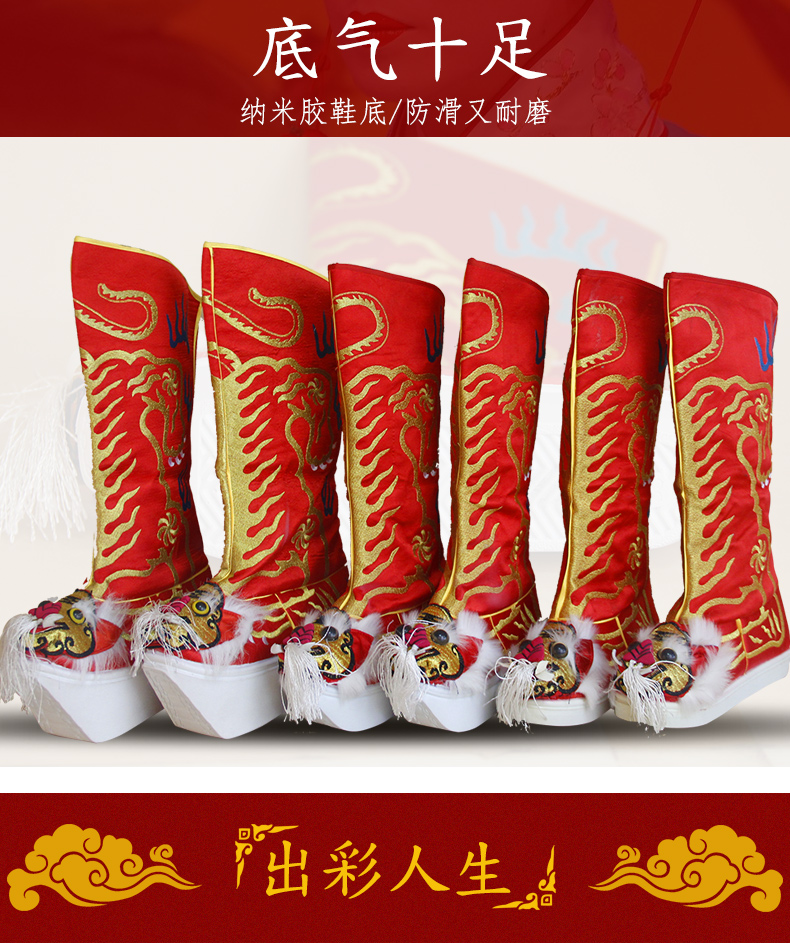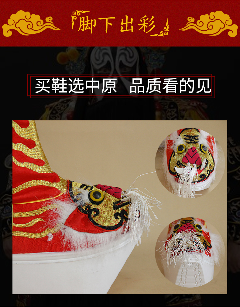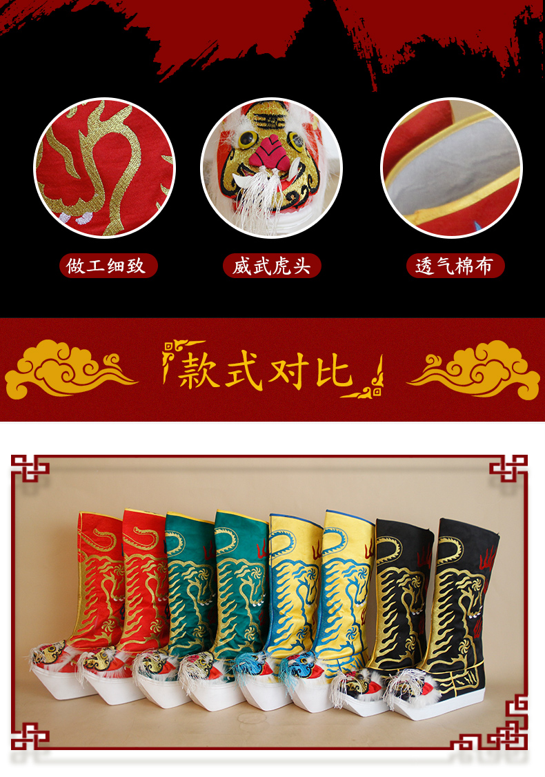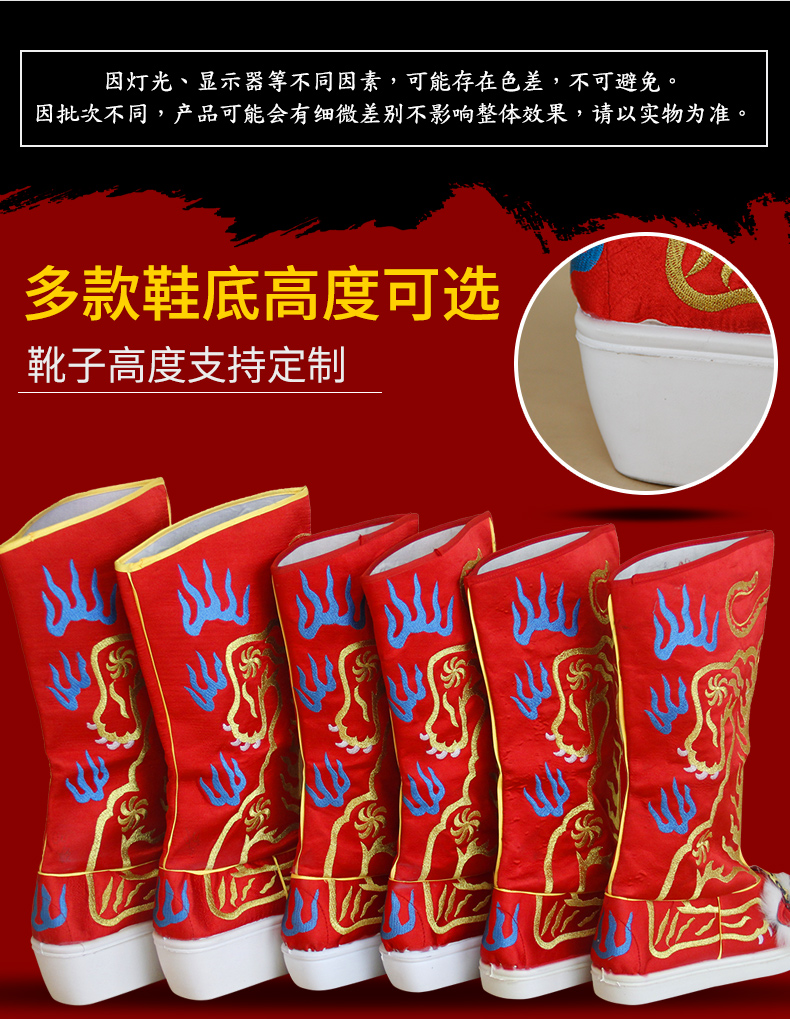 商品名称:中原戏装戏曲剧厚底虎头靴变脸武生武将军高靴陆文龙纳米胶底靴子