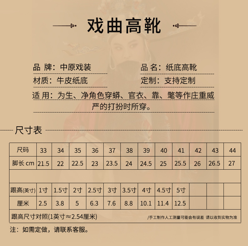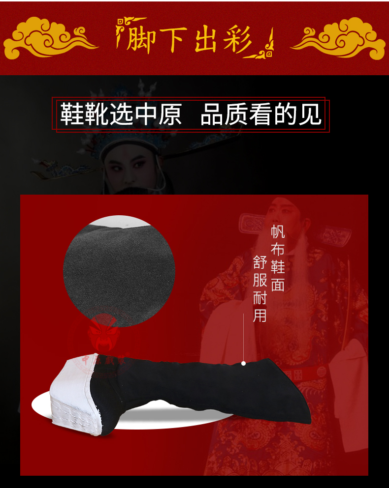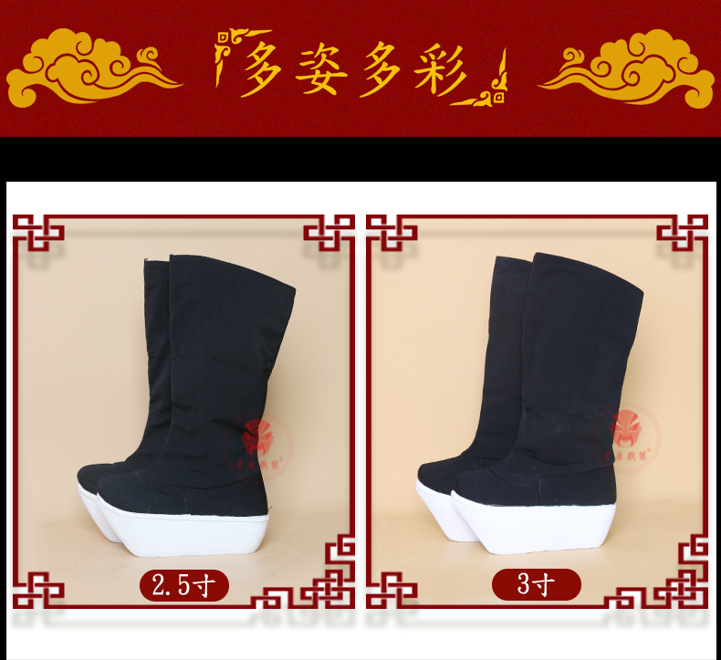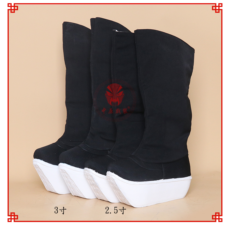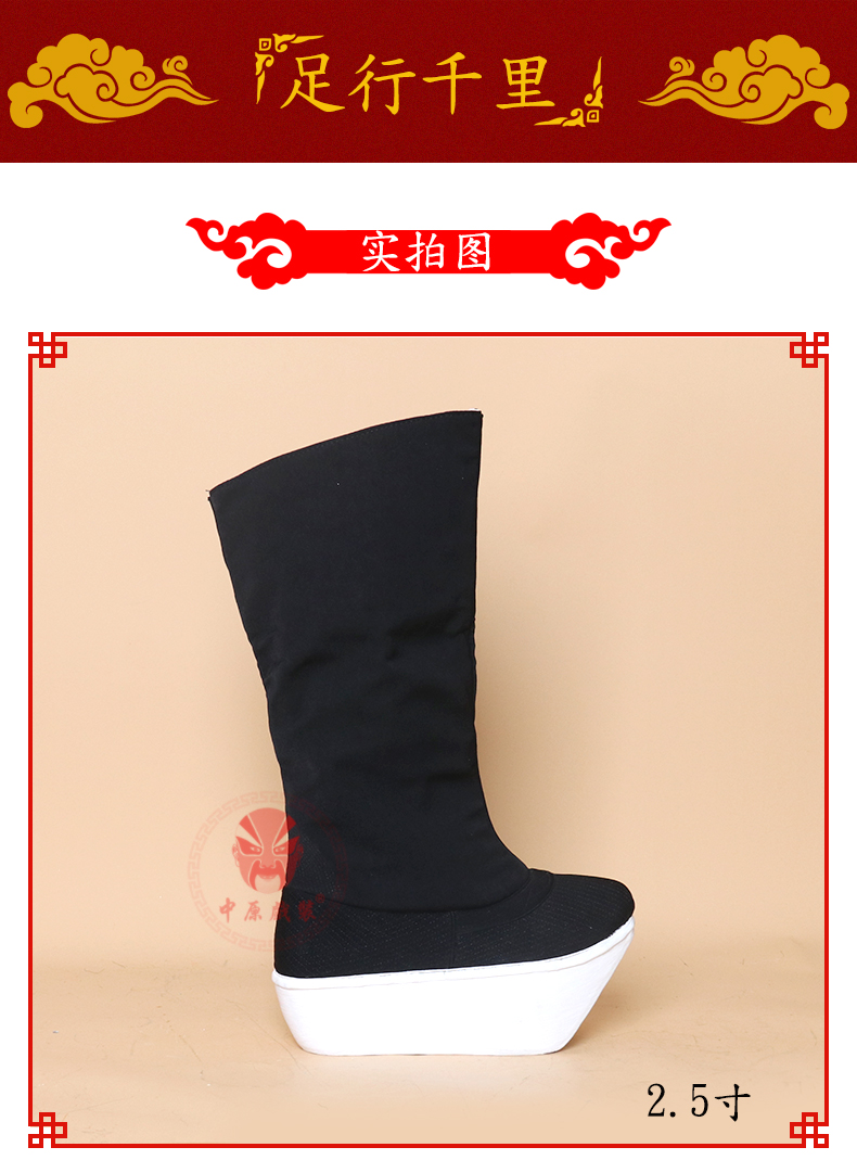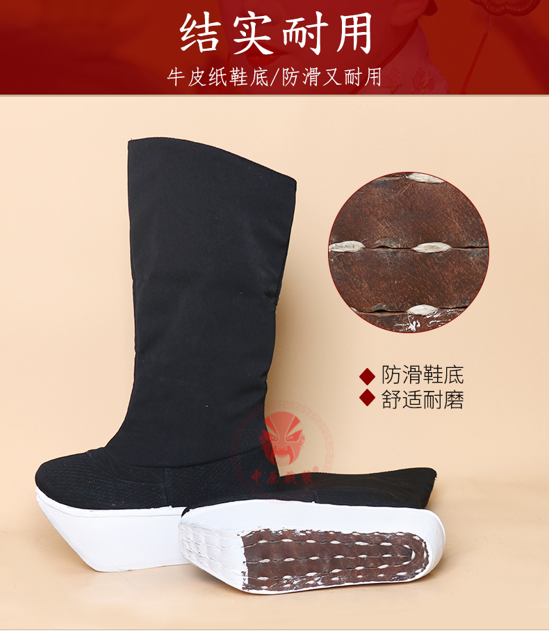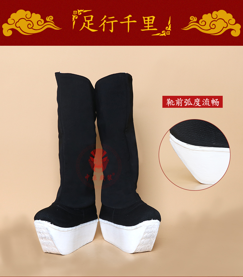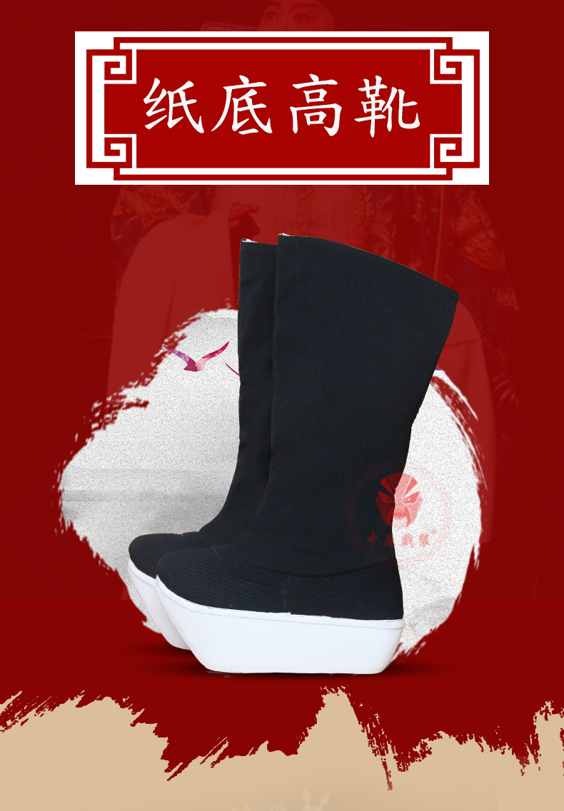 商品名称:中原戏装北京工艺厚底鞋戏曲戏剧纸底高靴京剧靴子官靴古代朝靴